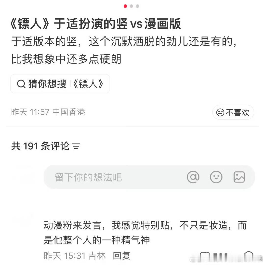 于适镖人造型原著粉们很满意,还原度很高~真人版更帅!