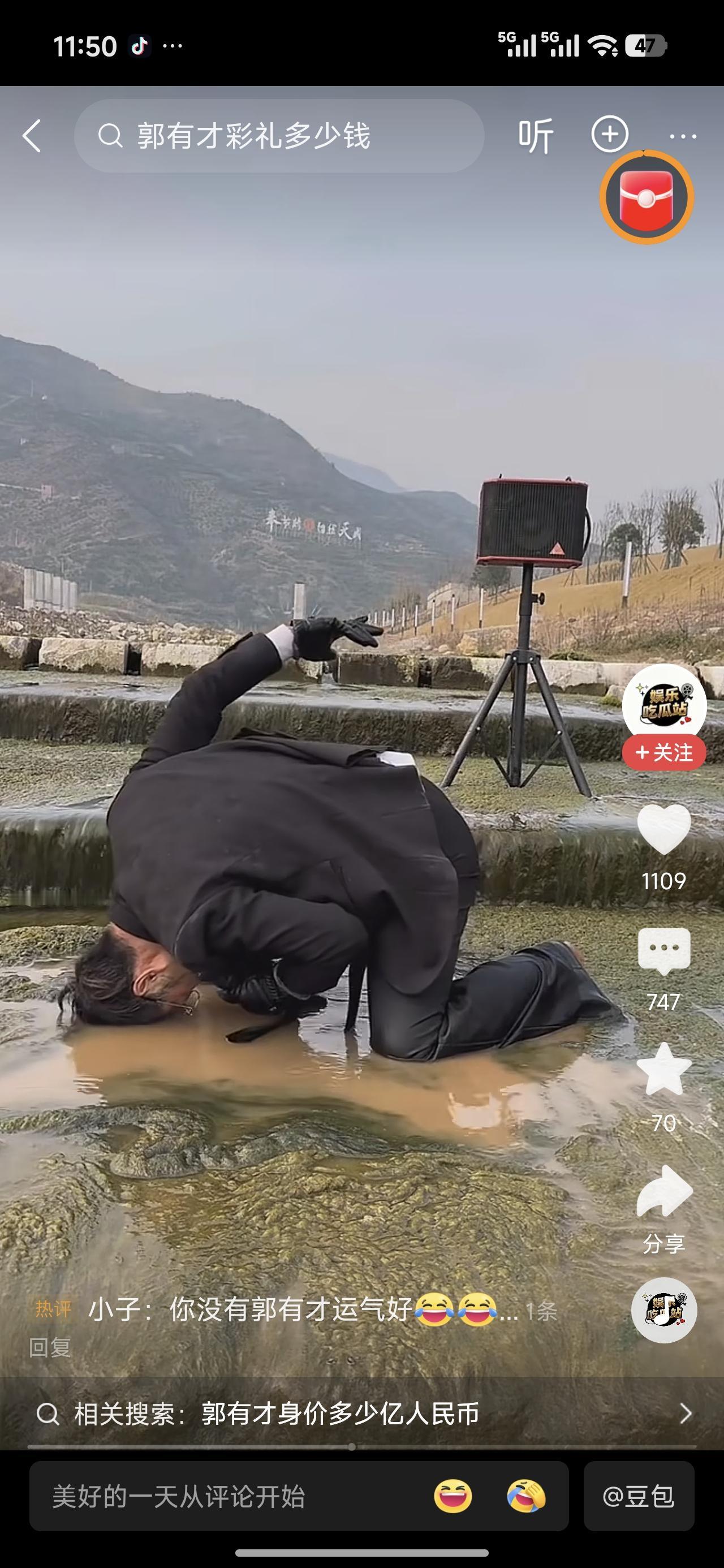 我了个豆啊!模仿郭有才这哥们儿,在水里唱。还把头浸水里,这是啥时候,这是纯有病吧!这不冷吗? 郭有才只是抖音月推人之一,后续持续发力的一个结果。不可能同类型的推第二次。 想什么呢? 当年模仿赵本山的,也一大堆。历史啊,它就是个轮回。笑死人。郭有才背影