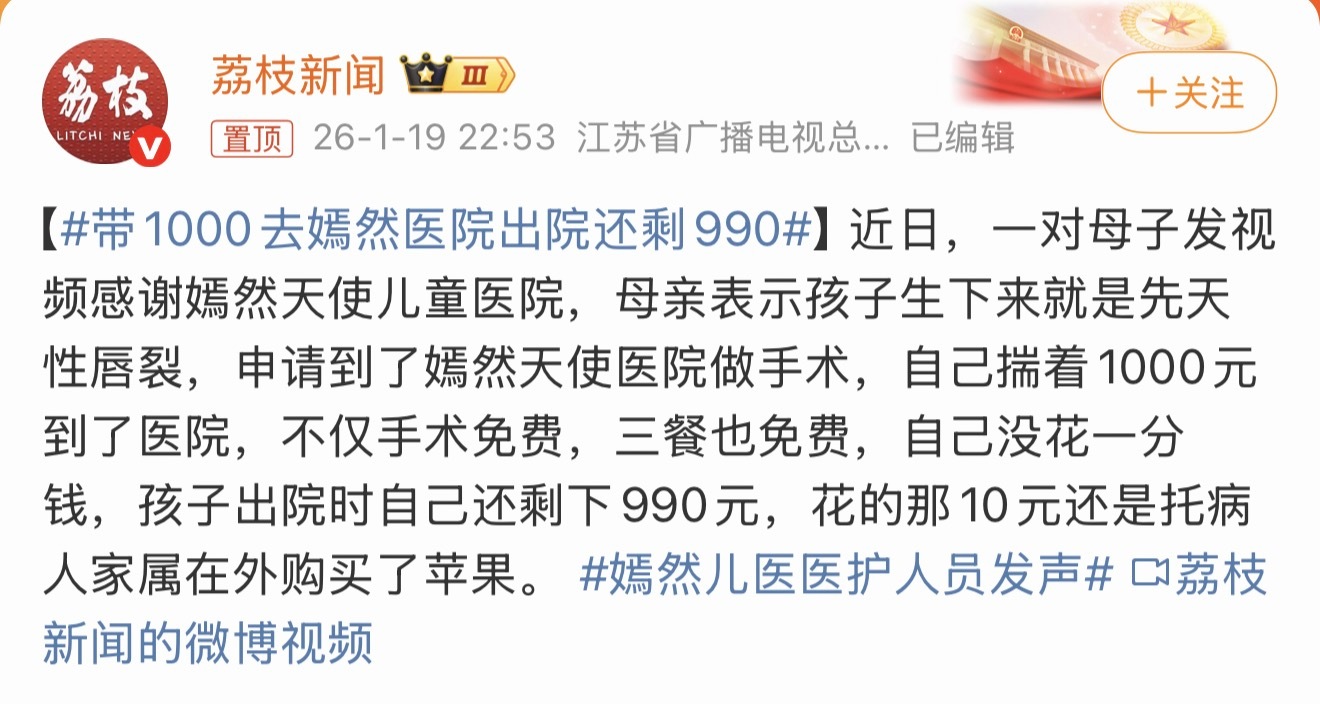 带1000去嫣然医院出院还剩990非盈利性医院生存挺难的,真是不多赚一分钱。希望最后能妥善解决嫣然医院的资金和后续经营问题。