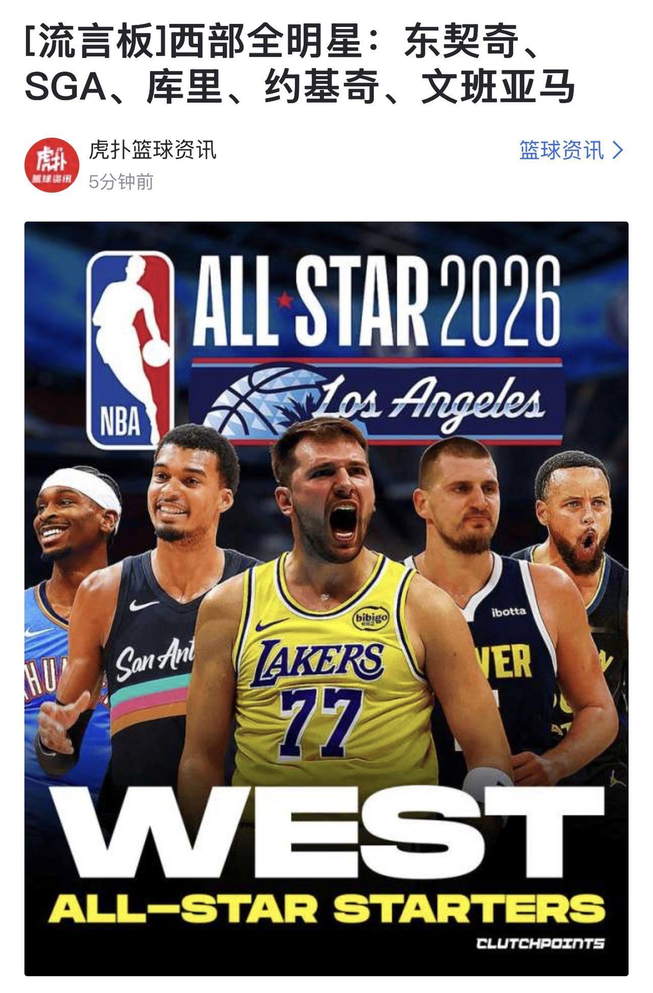 大多数人都觉得西部全明星,比东部全明星强吧? 东契奇+亚历山大+文班亚马+约基奇,就是库里差一点。 东部阵容,看着不太强,首发没得比,只能再看替补球员了。[大金牙]