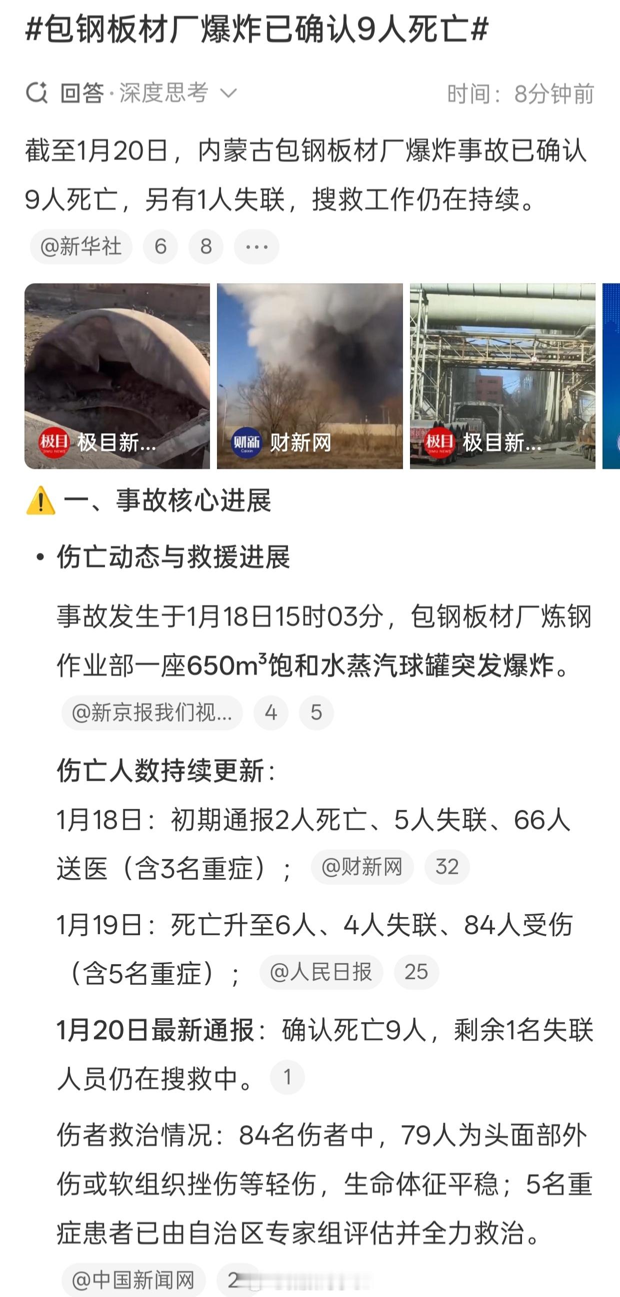 包钢板材厂爆炸已确认9人死亡快过年了,一定要安全生产希望没有更大的伤亡❤️