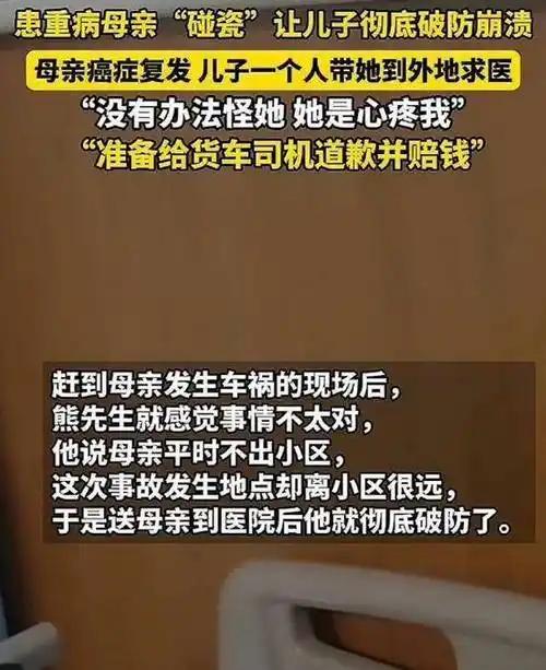 武汉64岁癌患碰瓷筹款?儿子怒斥引2万善款,善意从不是纵容 (文章内容仅供参考,无任何不良引导) 湖北武汉一场街头“碰瓷”,没等来全网唾骂,反倒收获满屏心疼。64岁口腔癌老人为治疗费铤而走险,35岁儿子一句“别害了别人”的怒斥,竟让陌生网友纷纷解囊,1元、10元的小额捐款,短短数日凑齐2万多元救命钱。这场颠覆认知的反转,藏着普通家庭对抗重病的无奈,更照见人性深处的柔软。 1月中旬的武汉街头,年过六旬的老人瞒着儿子,悄悄走到一公里外的马路中央。半年多的口腔癌折磨,让她经历数次手术,脸部肌肉严重变形,口齿不清到连手机面部解锁都无法完成。儿子熊先生准备午饭时发现母亲不见,焦急万分之际接到交警来电,告知母亲疑似被货车撞倒,在急诊室口吐白沫。火急火燎赶到医院,检查结果却出乎意料——老人仅脚腕轻微擦伤,货车根本没碰到她,监控画面还原了这场刻意策划的“碰瓷”。 单亲家庭长大的熊先生,自去年7月母亲确诊后,便独自扛起所有重担。卖游戏点卡、摆地摊、送外卖,三份零工连轴转,仍难覆盖母亲11万多元的治疗费。老人每月3000多元退休金,叠加医保与单位二次报销,面对持续的治疗开销依旧杯水车薪。曾跟儿子半开玩笑“钱花光就不治了”的老人,终究抵不过求生的渴望,才想出“讹司机保险”的歪主意。病床前,熊先生又气又急的质问视频被传到网上,本是想警示他人、惩戒母亲,却意外引发千万网友关注。 网友们没有一味指责,反倒被“既可怜又可气”的现实戳中。“谁愿意老来 dignity 扫地,还不是被病魔逼的”“儿子已经拼尽全力,老人也是走投无路”,评论区里满是共情。学生党挤出零花钱,上班族捐出半天工资,武汉本地一家养老院更是主动提出免费提供护理和癌症专属餐食。涓滴善意汇聚成河,2万多元捐款刚好凑齐老人下一次治疗费用。 熊先生的清醒更让人动容。他婉拒了超出治疗需求的捐款,主动联系被碰瓷的司机登门道歉赔偿,司机一句“大家都不容易”的体谅,让这场风波多了份温情。他直言“网友的善意重如泰山,不能辜负这份信任”,明确表示后续不再接受捐款,这份担当让善意传递更有分量。 口腔癌作为高发的头颈部恶性肿瘤,治疗费用高昂,晚期患者还可能面临吞咽、呼吸等多重困难,普通家庭往往难以承受。老人的“碰瓷”行为,于法于理都不可取,却折射出重病家庭“求生无门”的困境。网友的捐款,从不是对错误行为的纵容,而是看透了“恶”背后的“苦”,正如老话所言“事出有因,情有可原”。 这场从街头碰瓷到网络众筹的反转,让我们看到人性的复杂与光辉。儿子的怒斥守住了道德底线,网友的善意温暖了困境中的家庭,司机的谅解彰显了处世的包容。生活从不是非黑即白,善意也从不是无底线的纵容。愿每一个被重病压垮的家庭,都能得到应有的帮扶;愿每一份无奈之下的选择,都能被温柔以待;更愿这份跨越陌生的善意,能照亮更多人前行的路。