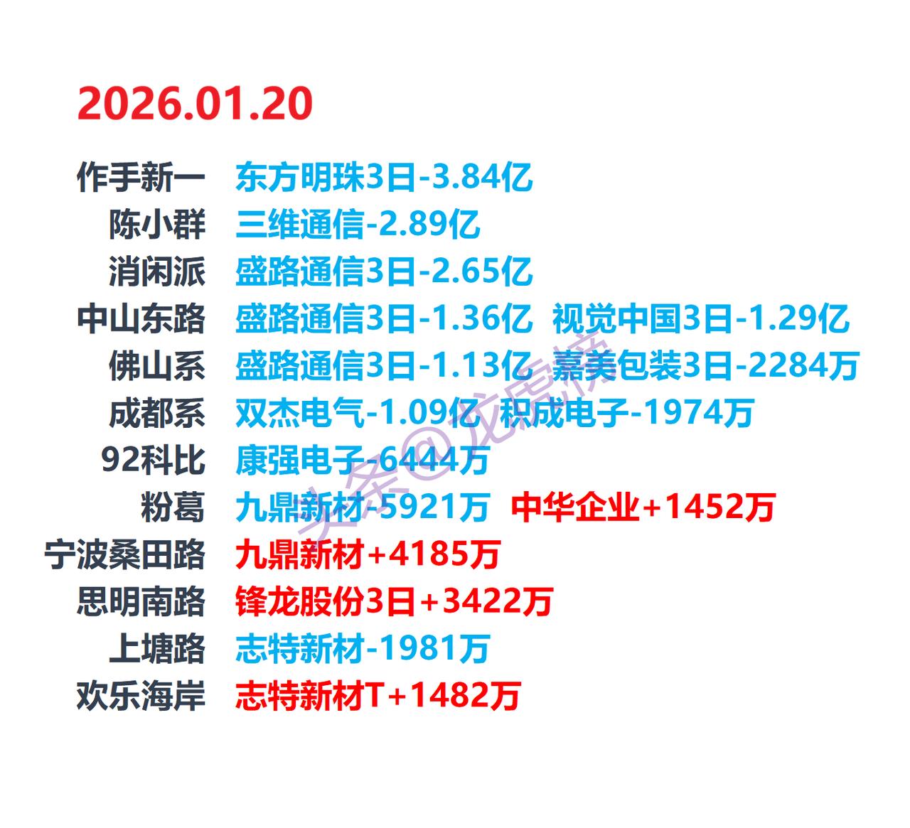 2026.1.20周二股票买卖数据大揭秘!"游资动向:三维通信遭抛售,人