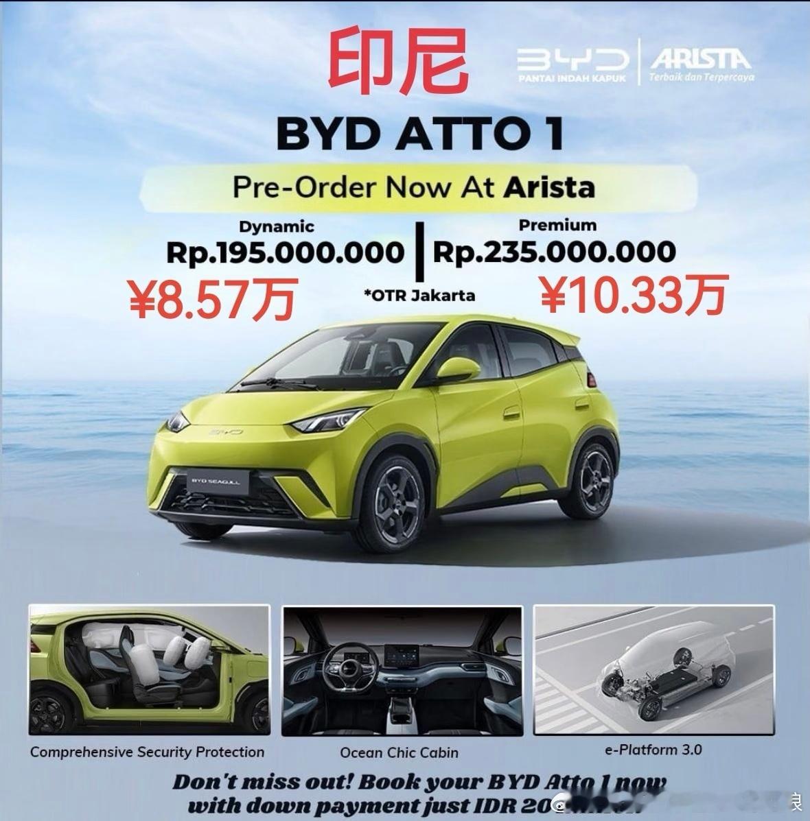 比亚迪杀疯了!🔥在印尼,BYDAtto1直接干进了销量榜第10,卖了22