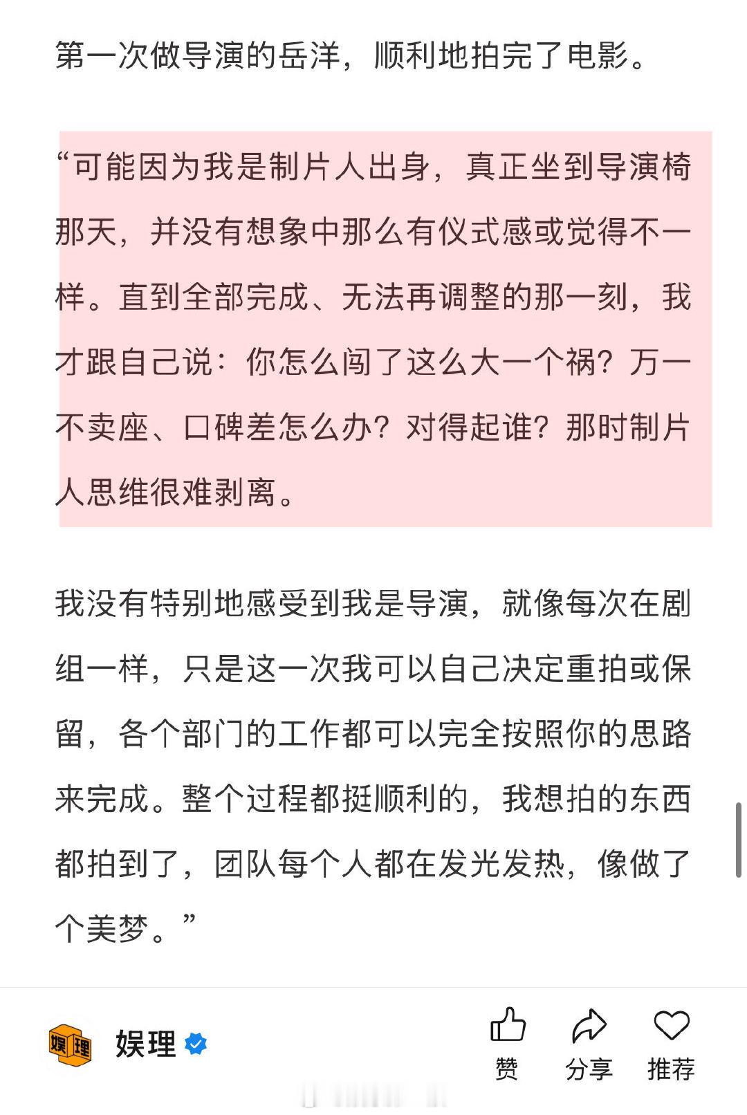 一部编剧遗作的诞生幕后 马腾导演看综艺选中林更新 第一次做导演的岳洋,顺利地拍完了电影《马腾你别走》。“可能因为我是制片人出身,真正坐到导演椅那天,并没有想象中那么有仪式感或觉得不一样。直到全部完成、无法再调整的那一刻,我才跟自己说:你怎么闯了这么大一个祸?万一不卖座、口碑差怎么办?对得起谁?那时制片人思维很难剥离…”娱理独家↓