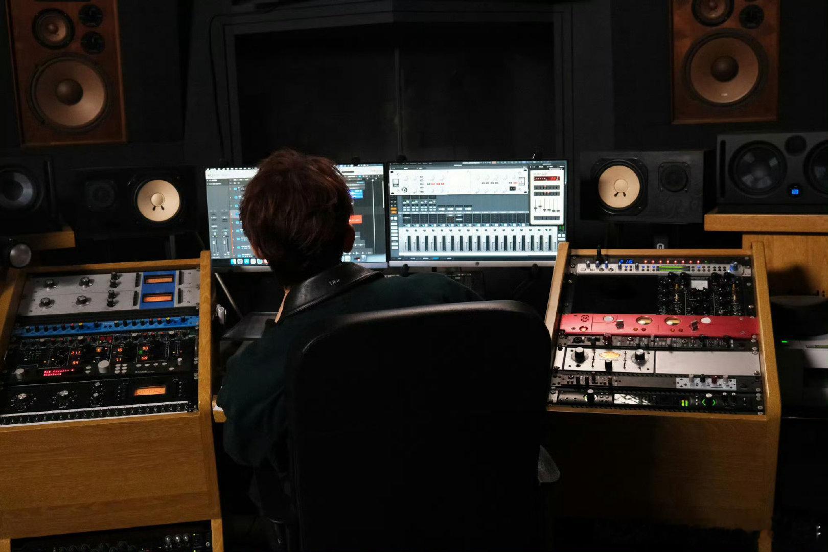 邓为配音花絮照,认真工作的帅哥