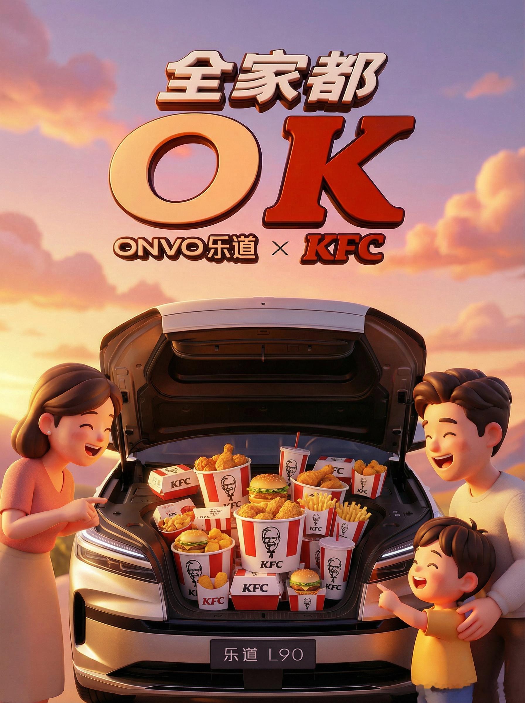 ONVO KFC,OK组合乐道和肯德基是有点东西的,过年吃肯德基,什么都OK下次用手势比👌,就是约乐友去吃KFC的意思了「ONVO KFC」=「OK」!乐道汽车