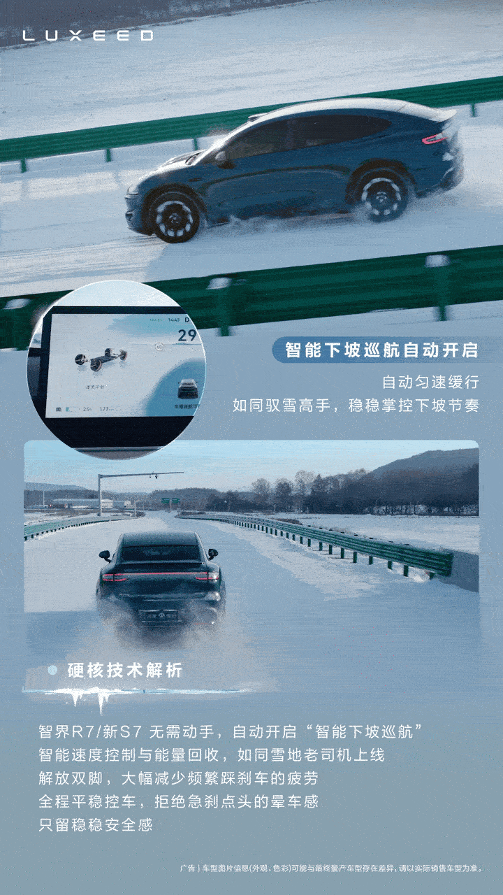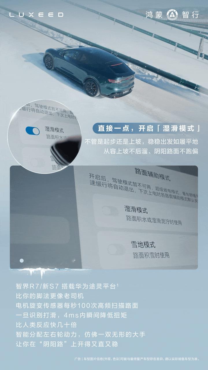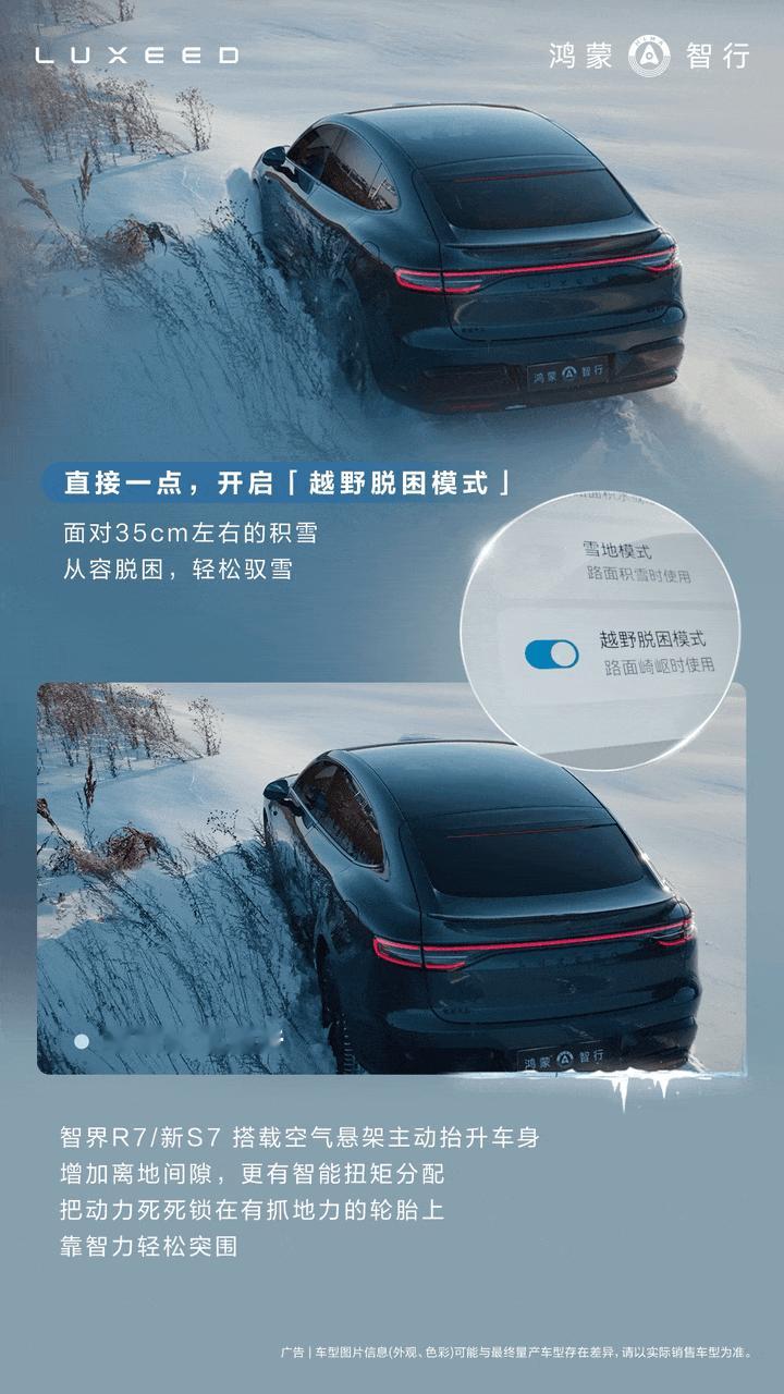 在黑龙江黑河零下25℃的严寒里,智界R7真扛冻!车子停在结冰的坡上,一松刹车就能稳稳起步,不后溜、不跑偏、陷进深雪,四驱立马发力,轻松脱困,AEB也能及时刹住,不打滑、不失控。这背后靠的是华为的“途灵”智能底盘,自动调节动力、刹车和稳定性,让车在冰雪天也稳稳当当,开起来特别安心。智界r7鸿蒙智行