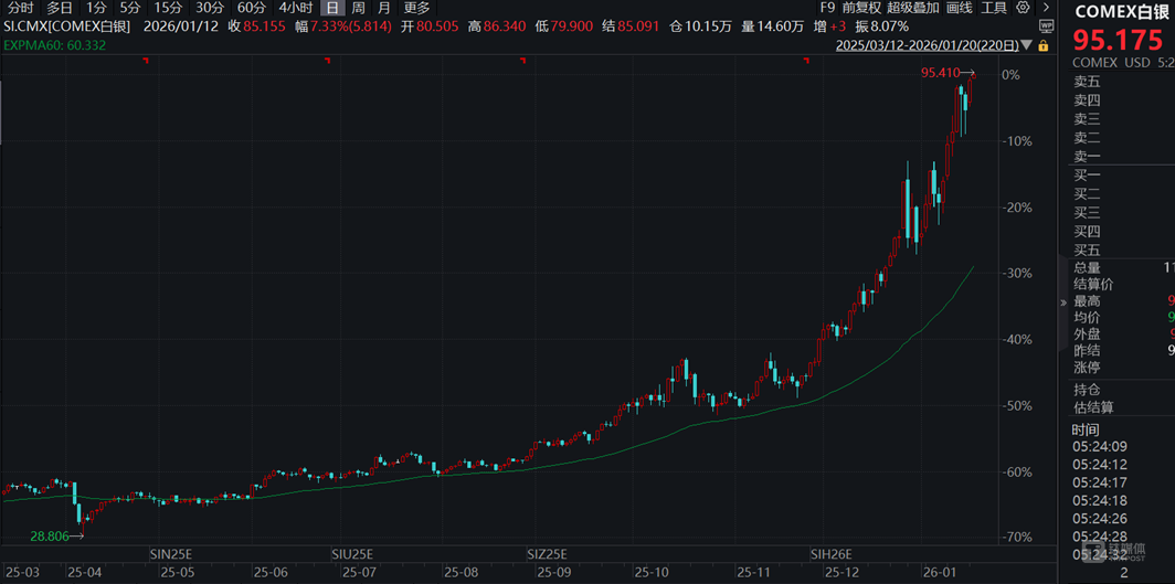 上游成本可以涨价,但下游组件在“内卷”和海外竞价中难以提价,导致利润“两头挤压”。更雪上加霜的是,原材料价格不跌反涨,尤其是白银和硅料。银价两年涨幅超过140%,2025年底伦敦现货银一度冲到历史新高。