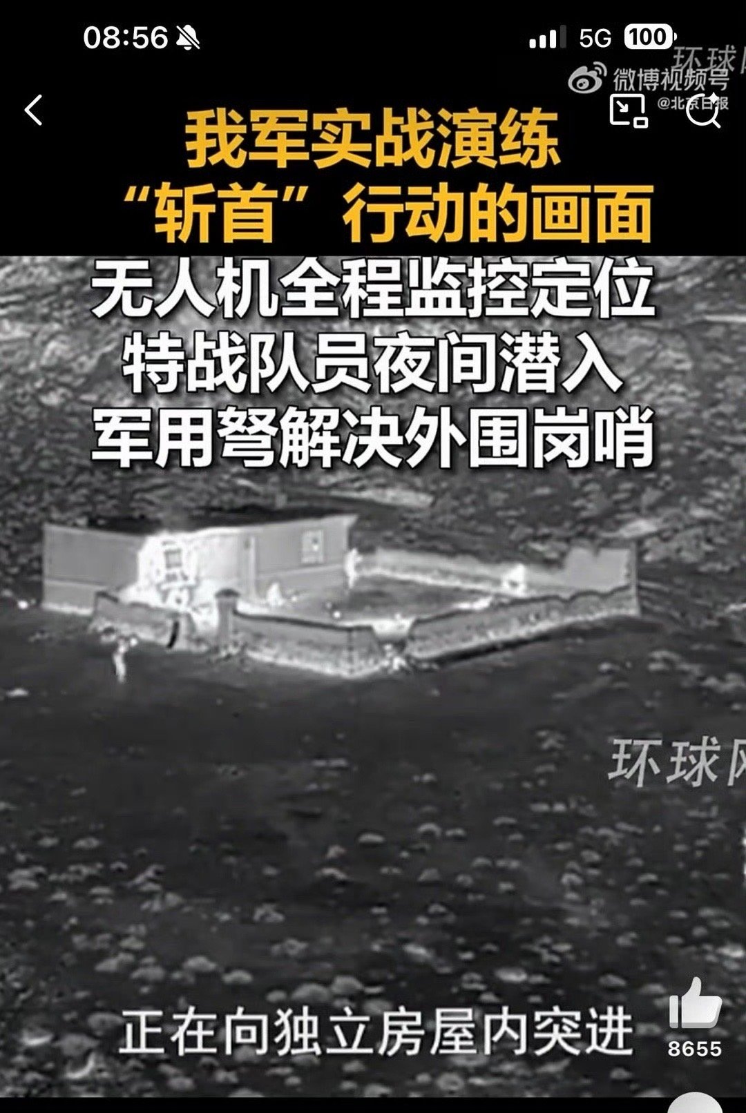 解放军演练斩首行动台独慌了这次公布的斩首行动是武警特战,用的是大疆旋翼无人机,击毙“歹徒”用的是步枪子弹。而在维护祖国统一的战斗中,出手的是解放军特种部队,用的是固定翼察打一体无人机,击毙台独分子的是精确制导导弹。都不是一个维度的武器,你瞎慌个啥