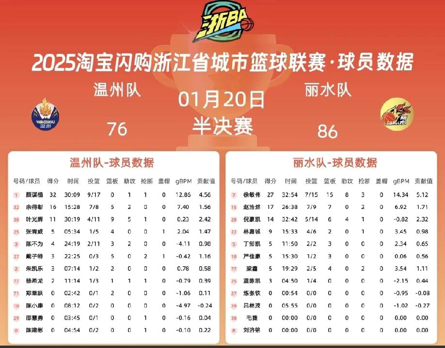 丽水客场86:76大比分击败温州队,赛后的技术统计会告诉你为什么? 原因大概率有以下几点: 1、篮板球温州队抢不过丽水队。 2、第四、第五得分点和板凳球员的得分能力温州队不如丽水队。 3、关键球的处理上丽水队强于温州队,特别是第一节和第二节倪豪凯的超远三分球绝杀,对温州队的信心上都是一个打击。 4、温州队昔日的“篮板王”戴子特今晚全场几乎隐身了。 …… 看看温州到丽水客场,能不能把大比分扳平?
