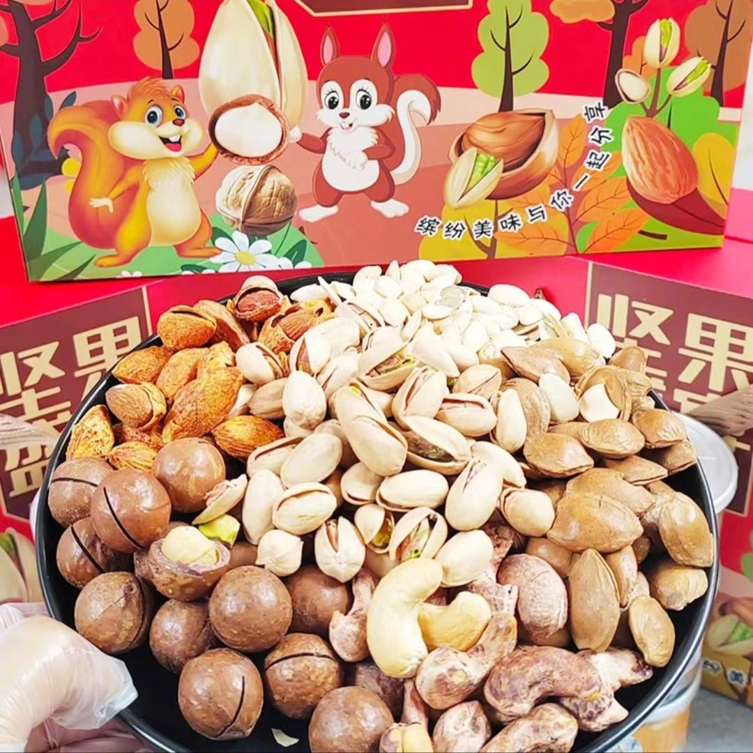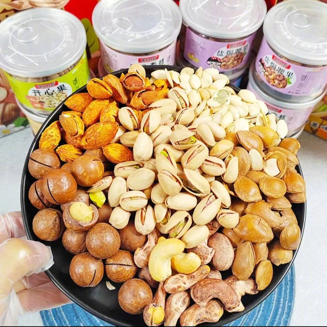 这款坚果礼盒,甄选优质坚果,精减配料,拒绝漂白!还原坚果的原色原香,每一口吃到的都是坚果原本的自然醇香。夏威夷果来自澳大利亚,这里的光、热、水、风等自然条件有利于澳洲坚果的生长。每一颗夏威夷果都个头大且圆润饱满,吃起来有一股奶香的味道,清脆清香。自然开,轻松更好剥,那必须得是开心果了。开心果起源于地中海沿岸的土耳其。吃开心果会不会变开心尚未可知,但果仁翠绿饱满,成熟的开心果种壳自然开裂,人们能直接看到它心里!人工挑选的巴旦木,颗颗浓厚饱满,薄薄的果壳一剥就开,一点都不粘手,嚼起来也很松脆!虎皮大腰果,每颗腰果个大饱满完整,形状大小均匀,腰果颜值与口感并存,果仁松脆,好吃到根本停不下来!来自新疆的手剥开口杏核,清香脆脆,壳薄易剥,越嚼越香!还有盐焗南瓜子,硕大果仁,每一个都颗粒饱满~入口酥脆的小零食,越嚼越香,可以直接一口闷~年货坚果大礼盒 甄选12罐坚果礼盒1296g 心选好礼 以礼待人