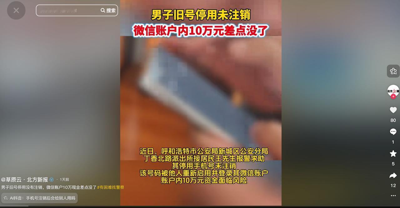 吓坏了!内蒙古呼和浩特,一男子在玩手机时,突然发现自己的微信账号被强制下线,再登录时发现已经登录到其他手机号上。他心头一紧,因为微信钱包里还放着十万块钱。报警后才知道,原来是停用手机号被他人启用了。 内蒙古呼和浩特的王先生手持手机悠然刷着微信,惬意享受着这难觅的闲适,然而屏幕上蓦地跳出一条提示,“账号已在其他设备登录,强制下线” 。 他心中猛地一紧,下意识地重新输入密码登录账号,然而系统显示,该账号当前绑定的竟是一个陌生手机号,而非自己正在使用的那个号码。 这一下王先生瞬间慌了神,后背惊出一身冷汗,他的微信钱包里,可是实实在在存着十万元巨款,一旦被人动了心思,后果不堪设想。 他急得手忙脚乱,反复尝试找回账号,可每次接收验证码的通道,都指向那个自己多年前就停用、早已随手丢弃的旧手机号,验证码一条条发到别人手里,自己却连账号控制权都摸不着,王先生像热锅上的蚂蚁一样团团转,越想越害怕,生怕对方发现钱包里的钱,赶紧掏出手机报了警,盼着警方能帮忙挽回局面。 本以为这是一起技术高超的盗号案件,可随着民警介入调查,真相浮出水面,并没有想象中那么复杂,反而让王先生又悔又后怕,原来多年前他更换新手机号时,图省事既没有解绑微信、银行卡等各类绑定平台,也没专程去营业厅办理旧号的销户手续,只觉得手机卡欠费停机后,扔了就万事大吉。 他不知道的是,通信运营商为了合理利用有限的号段资源,会对长期闲置、欠费停机的手机号进行回收,经过一段时间的冷冻期后,重新作为新号码投放市场,卖给有需求的新用户,王先生的旧手机号,就恰好被运营商回收后,卖给了一位陌生市民。 这位新用户拿到手机号,插入手机登录自己的微信时,意外发现这张卡竟然还绑定着王先生的微信账号,甚至能清晰看到账号里的余额和相关信息。 万幸的是这位新用户心性正直,没有动贪念,只是暂时登录了账号,并没有触碰钱包里的钱,民警联系上他后,耐心阐明了情况和相关法律后果,他也十分配合,当即退出了王先生的微信账号,把账号控制权交还给了原主人。 一场风波有惊无险地落幕,王先生悬着的心终于落了下来,可回想整个过程,依旧心有余悸,他万万没想到,自己当年一个草率的举动,竟然给财产安全埋下了这么大的隐患,而这件事也戳中了很多人的生活误区,折射出一个容易被忽视的隐形陷阱。 生活中不少人更换手机号时,都和王先生有着同样的想法,觉得只要把旧卡扔了、欠费停机了,就彻底和自己没关系了,可实际上运营商回收闲置号码循环利用,是合规且普遍的行业惯例,一旦旧号流转到他人手中,就相当于把自己的 “数字身份钥匙” 拱手让人。 要知道旧手机号绑定的远不止微信一个平台,手机银行、支付宝、电商购物软件、短视频账号、外卖平台,甚至是工作中用到的办公软件、VPN 等,大多都是依靠手机号接收验证码验证身份。 一旦旧号被他人启用,对方只需通过验证码,就能轻松修改各类平台的登录密码,掌控你的账号,甚至可能转移账户内的资金,窃取个人信息,造成难以挽回的损失。 更值得警惕的是,市面上不乏一些心术不正之人,专门盯着 “二次放号” 的漏洞,尝试登录各类平台 “撞库” 捡漏,寻找可乘之机,看似只是丢弃一张旧手机卡,实则是给陌生人留了一扇随时能闯入自己网络生活的后门,隐患重重。 这起事件也给所有人敲响了警钟,更换手机号绝不能草率,在换号前一定要耐下心来,逐一解绑所有绑定过旧号的平台,从微信、支付宝、手机银行等金融类软件,到外卖、电商、短视频等日常应用,一个都不能遗漏。 仅仅解绑还不够,最稳妥的方式是携带身份证,前往营业厅办理旧号的正式销户手续,即便部分地区支持线上销户,线下办理并留存回执单,才能最大程度杜绝后患。 一个小小的疏忽,就可能引发巨大的财产风险,希望大家都能吸取王先生的教训,重视旧手机号的处理,别让一时的图省事,给自己带来无法挽回的损失。
