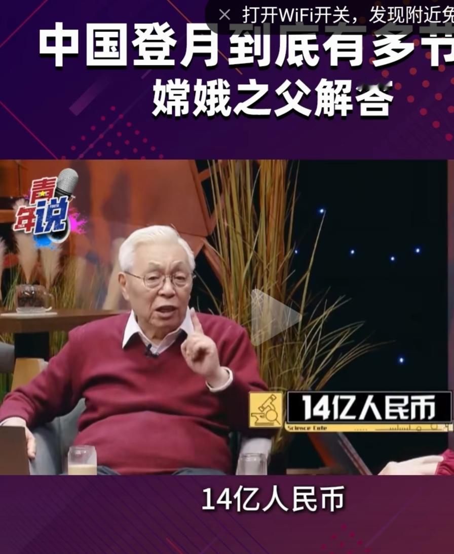 老院士拿美国的阿波罗登月与中国的嫦娥一号科研经费作比较。 他说,美国的阿波罗计划花了254亿美金。而我们的嫦娥1号只花了14亿人民币。很显然,这只是阿波罗计划的一个零头。 大伙都知道,科研项目是要花巨资的。动辄上百亿都不是什么新鲜事儿。可是我们的科研项目真的是把钱都用到了实处。