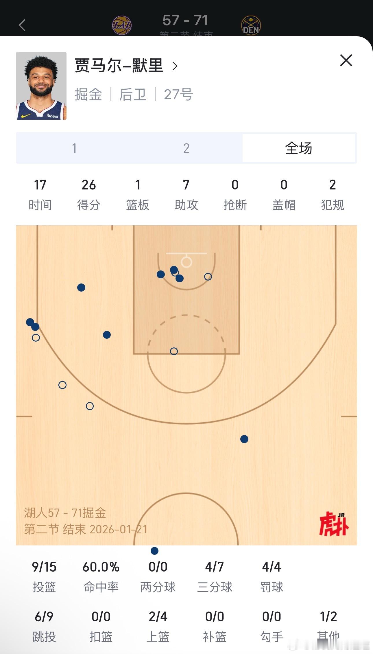 湖人vs掘金不儿这贾马尔穆雷一打湖人就嗷嗷来劲啊后场三分又来了