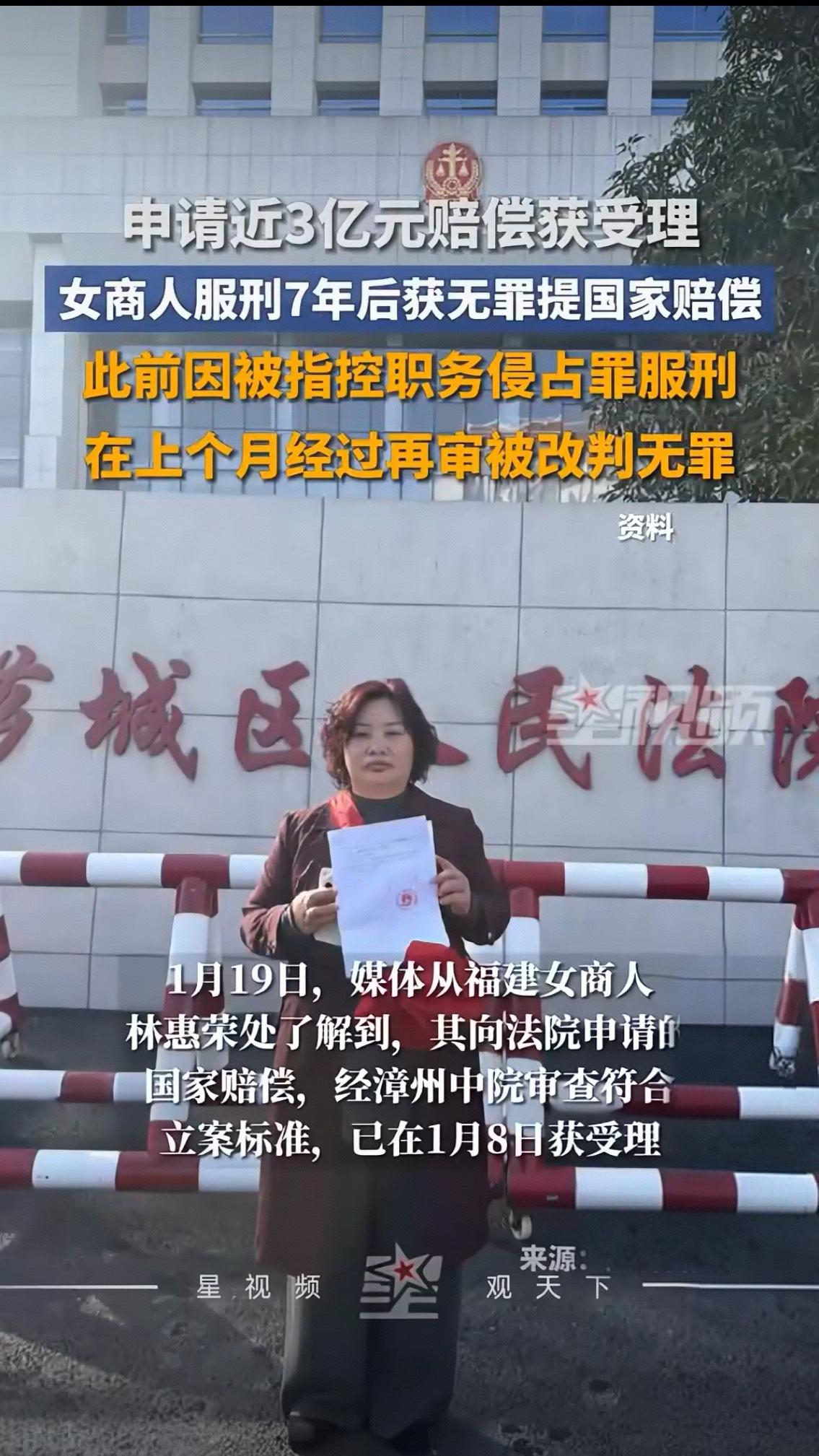 近3亿元赔偿申请获受理的背后,是一位女商人用15年光阴赌一场司法公正的悲壮坚守。当漳州中院的立案回执递到林惠荣手中时,这位52岁的女性指尖微微颤抖——她等这一天,等了整整7年牢狱、5年申诉,等得青丝染霜,等得事业崩塌,等得人生最珍贵的时光被错判碾碎。 谁能想到,这场漫长的冤屈,竟始于一场普通的股权纠纷。2010年,林惠荣与丈夫创办公司,引入股东后因经营矛盾产生分歧,对方擅自拉走160余万元货物离场,她为保全资产变更股权的自保行为,竟被定性为“职务侵占”。2013年那个清晨,正在接洽客户的她被警方带走,从此跌入深渊。一审获刑7年,二审驳回上诉,即便身陷囹圄,她始终梗着脖子拒绝认罪,三次放弃减刑机会,“我没做过的事,认了就真的洗不清了”。狱友劝她妥协,管教劝她低头,但她把纸笔攒起来,写下厚厚一摞申诉材料,寄出去的信件大多石沉大海,却从未停下抗争的脚步。 监狱外,丈夫林明武的日子同样煎熬。他关停公司,白天打零工维生,晚上蹲守法院递材料,被律师劝过“别折腾”,被现实磨得痛哭流涕,却始终坚信妻子的清白。转机出现在2023年,一份被遗忘的《资产分割过程说明》浮出水面,明确记载双方曾协商分割资产,监控截图与证言形成完整证据链,直接推翻了原审认定。再加上法学界大咖周光权教授撰文发声,指出股权转移不宜认定为职务侵占罪,司法纠错的齿轮终于开始转动。2025年12月23日,当法官念出“无罪”二字时,林惠荣攥着丈夫的手,压抑15年的泪水决堤而出。 如今近3亿元的赔偿诉求,看似天价,实则字字是血泪。这其中有2557天冤狱的人身自由赔偿,有因羁押垮掉的健康损失,有倒闭公司的财产折损,更有15年蒙冤的精神创伤。有人质疑金额过高,但谁能量化被夺走的7年自由?谁能弥补从意气风发的女商人到刑满释放人员的落差?谁能偿还夫妻俩租10平米出租屋、被房东催租的窘迫岁月? 这场案件早已超越个人恩怨,成为法治进程的一面镜子。它告诉我们,司法纠错或许会迟到,但绝不会缺席;它警示世人,刑事手段绝不能随意介入民事纠纷;它更让我们看到,一个普通人对正义的坚守,能爆发出怎样震撼人心的力量。林惠荣的赔偿最终能获赔多少尚未可知,但这场跨越15年的抗争,已然为所有坚守正义的人点亮了一束光。 你觉得3亿元赔偿合理吗?如果是你,会为了清白放弃减刑机会吗?欢迎在评论区留下你的观点,一起为司法公正发声!福建女企业家 林惠荣