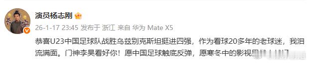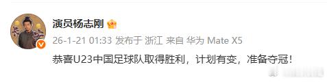 杨志刚恭喜U23中国足球队杨志刚看球赛看到凌晨,连恭喜U23中国足球队取得胜利,上个星期半决赛就很好U23国足,看出来刚哥很兴奋了恭喜U23国足进决赛!!2025微博之夜爆款创作大赛