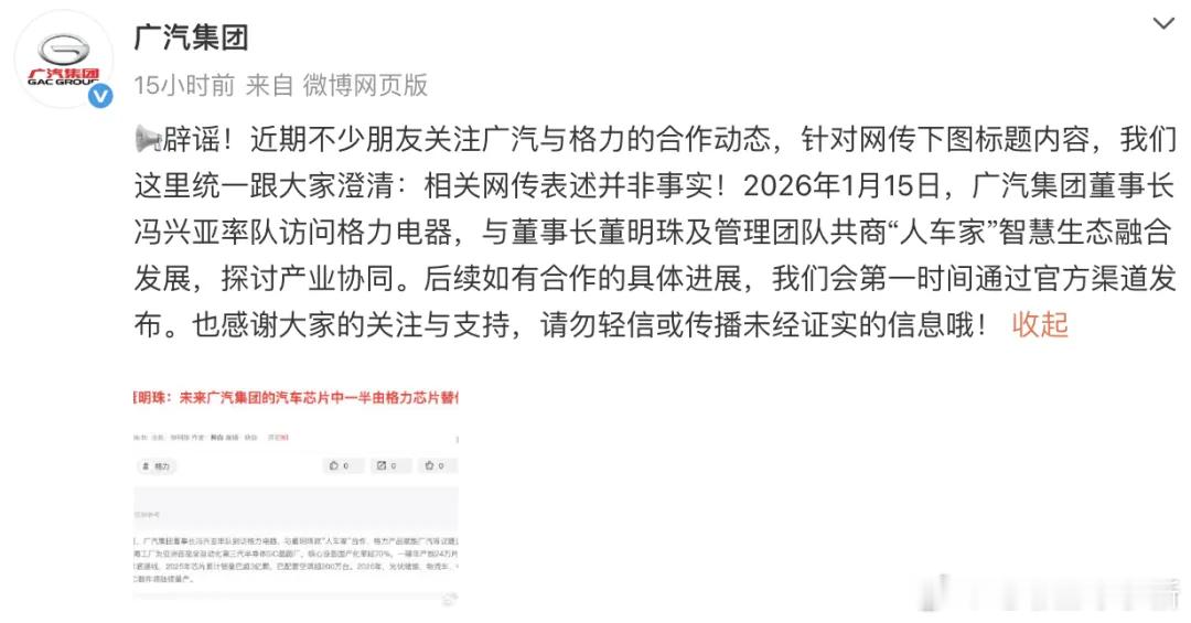 广汽否认一半汽车芯片将由格力芯片替代:相关网传表述并非事实该公司表示,近期的谈判重点是生态系统合作,而非具体的芯片供应协议。 讲真,这种说法刚传出来的时候,真有人信吗?广汽辟谣未来芯片半数由格力替代