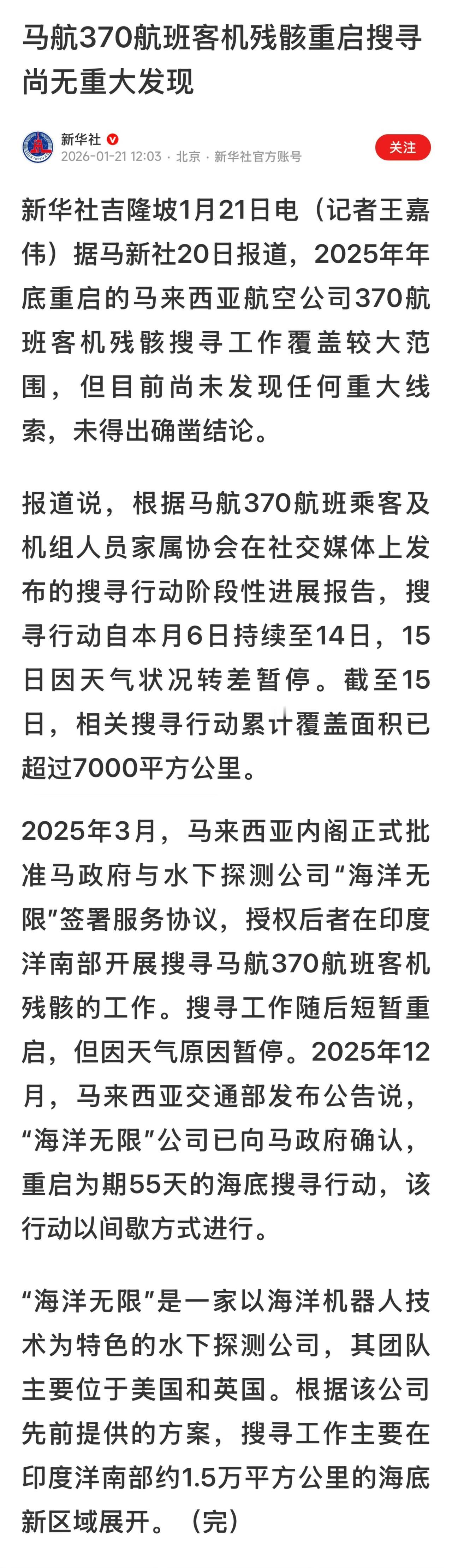 美国海底勘探公司“海洋无限”搜寻行动本着“不成功、不收费”的原则进行。但如果搜寻到航班残骸,将获得7000万美元。