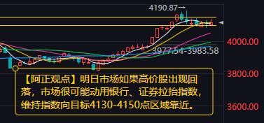 【1月21日A股收评:明日市场如果高价股出现回落 市场很可能动用银行、证券拉抬指数维持指数向目标4130-4150点区域靠近】 盘前分析“今日大盘大概率低开,获支撑后会有回升”,午评判断“午后大盘继续乐观 指数反弹空间看4130-4150点区间”判断符合大盘实际:市场冲高回落,沪指午后一度翻绿。两市成交额26007亿元,较上一个交易日缩量1771亿,个股涨多跌少,参与今日交易的5175只个股中,2962只收红,涨超9%个股122只。 盘面上,市场热点快速轮动,板块角度看,贵金属概念全天领涨,四川黄金涨停;芯片产业链爆发,华天科技等10余股涨停;锂矿概念震荡反弹,盛新锂能等3股涨停;油气概念表现活跃,惠博普、洲际油气涨停;大消费板块集体走弱,白酒方向领跌;银行板块震荡下跌,农业银行跌近3%。 指数表现:沪指涨0.08%,报收4116.94点;深成指涨0.70%,报收14255.13点;创业板指涨0.54%,报收3295.52点。 板块表现:513个板块中,409个收红,贵金属、芯片产业链、锂矿、油气等概念涨幅居前;大消费、银行、电网设备、保险等板块跌幅居前。 资金表现:大盘资金全天净流出12.29亿元,其中上证净流入42.60亿,深证净流出54.89亿。 两市成交:两市全天成交额26007亿元,较上一个交易日成交额缩量1771亿元,上证成交11802亿元,较上一个交易日成交额缩量413亿元。 明日猜想:今日资金集中高价股做盘,大主力强拉大基金持股板块,拉高无力,下跌不敢,答案就是控盘。由于银行、证券今天处于休整小幅下跌状态,明日市场如果高价股出现回落,市场很可能动用银行、证券拉抬指数,维持指数向目标4130-4150点区域靠近。 我写精品,你来点赞,相互支持,携手共进。 (个人观点,仅供参考,据此操作,责任自负)
