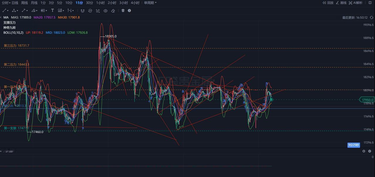 趁我们休市,LME镍又下去了,未破15分钟级别区间震荡,下午追高的晚上一开盘容易被闷,这时候做大趋势的很难受,刚赚点,一转眼又吐出去了,感觉做镍很痛苦,跌下去时不时玩一下回头杀,多空双杀,这货主力是谁,哪那么多资金多空来回打?