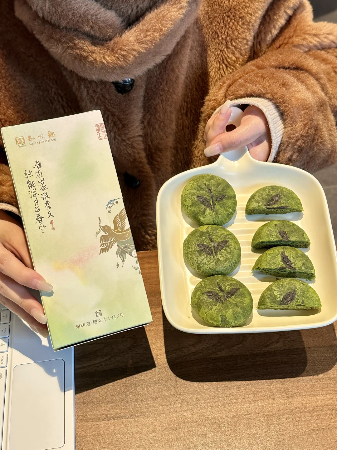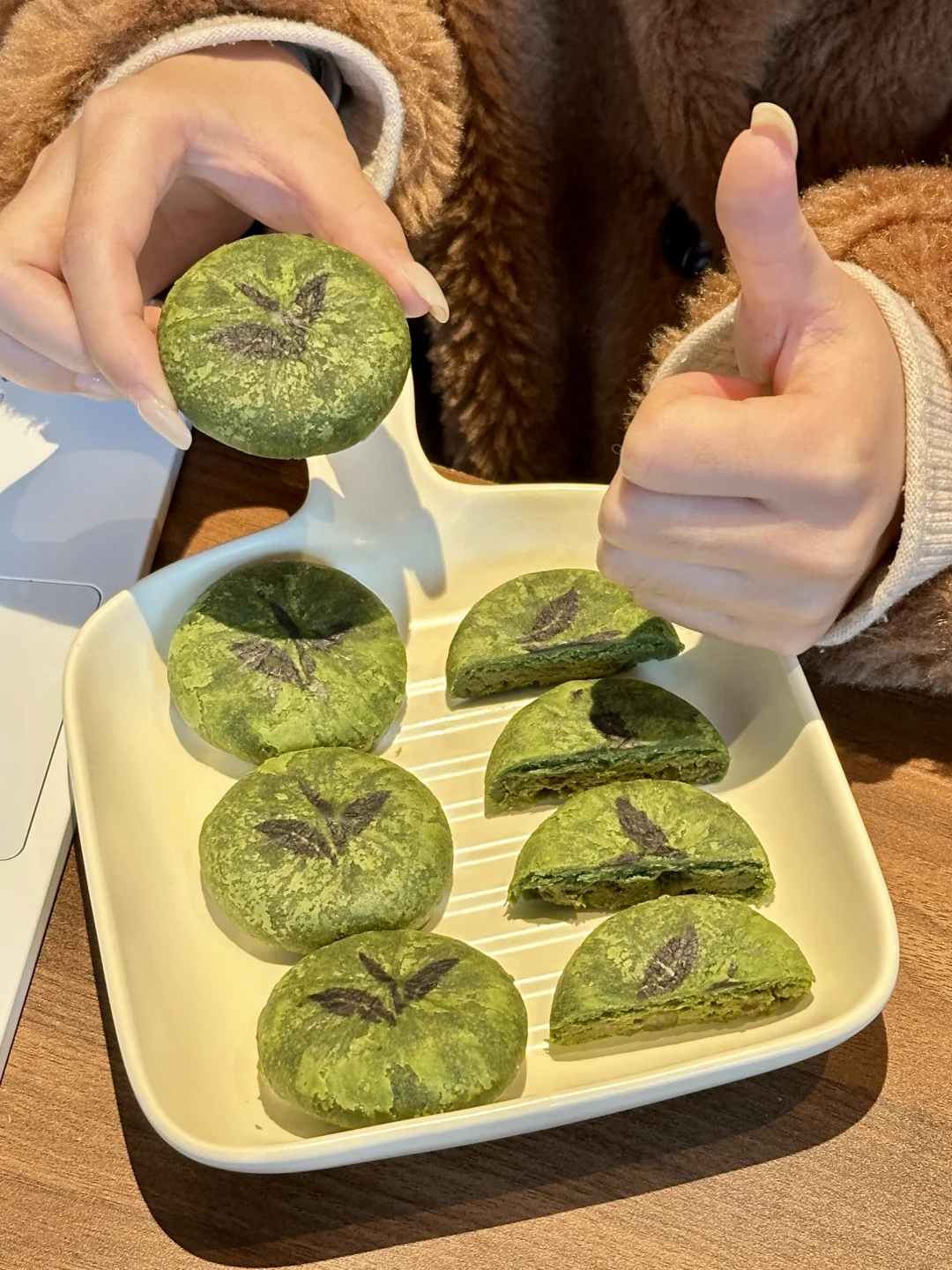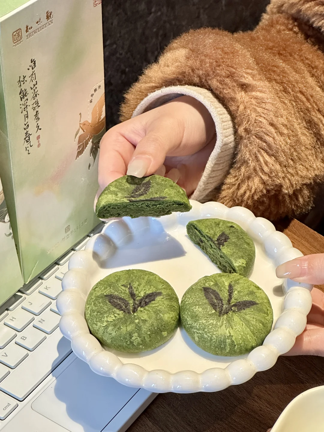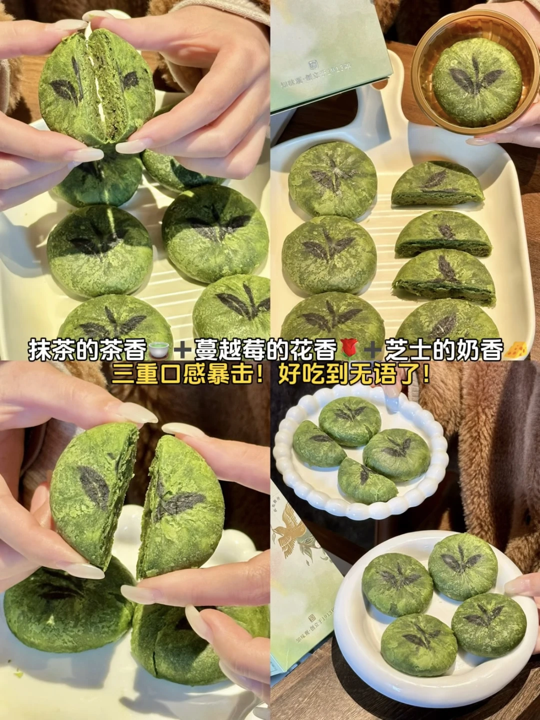 🌈谁懂啊!朋友从杭州出差带的伴手礼 居然挖到羽毛球运动员陈雨菲推荐的知味观龙井茶饼!! 不愧是西湖边的百年老字号,茶饼都是短保的,主打就是新鲜! 圆滚滚的造型超可爱,外皮还印着茶叶纹路,让我忍不住咬一口尝尝味道! 掰开是绵乎乎的奶酪状内馅,抹茶的茶香🍵➕蔓越莓的果香🌹➕芝士的奶香🧀三重口感暴击!好吃到无语了! 它是3-5分的轻甜口感,不爱吃甜的我一口气炫了两块! 独立包装超方便,闺蜜朋友聚会送朋友送长辈也倍有面! 去杭州玩的姐妹,建议人手一盒囤上!