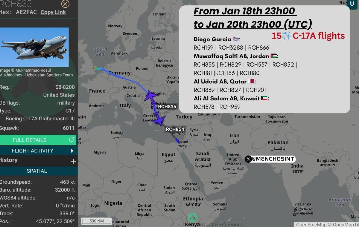 🔻美国官员向《华尔街日报》透露,随着伊朗与美国在中东地区的紧张局势持续升级,美国陆军正向该地区增派防空系统,包括更多 MIM-104“爱国者”地对空导弹阵列和 THAAD 反导系统。🔻这些防空装备对于抵御伊朗可能发动的重大报复性袭击至关重要。🔻大家可以理解图2 C-17 的大规模飞行了。热点现场海外新鲜事