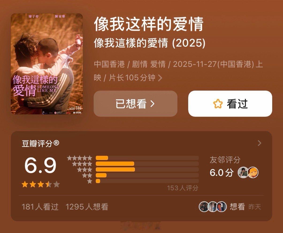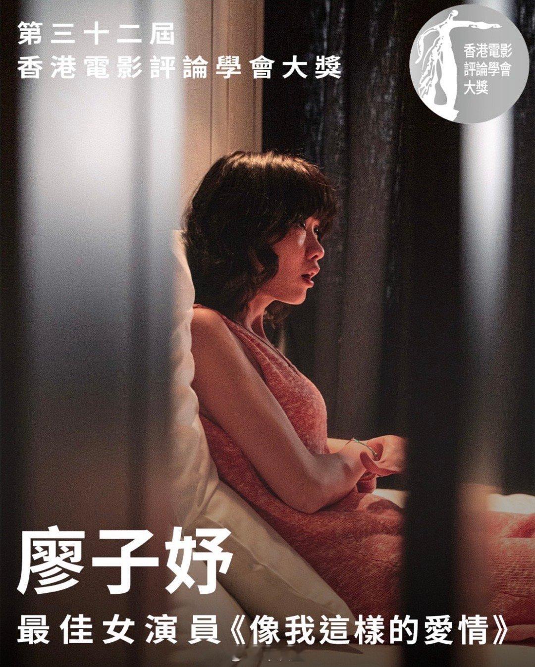 香港电影评论学会给本届影后廖子妤的得奖理由:-最佳女演员:廖子妤「像我这样的爱情」仿效脑麻少女形态作为任务的起点,廖子妤有意识地将身躯视为软件,设定角色载体的独特性和外观,压抑的声线、右手腕、下身等,却相连柔软的眼眸和脖子。内在翻动的性欲渴望与情感,以最率直灵巧的左手手指表达,轮椅成为延伸的躯体供她发挥。廖子妤不只是身体不灵者的模仿,而是将身心相连激活,演绎一个无视现实条件限制,却自信追求幸福的阿妹。挺高难度的一个表演,今年金像奖影后似乎十拿九稳了。不过本片的成片口碑一般,豆瓣目前评分6.9.跨年电影愿香港电影金像奖