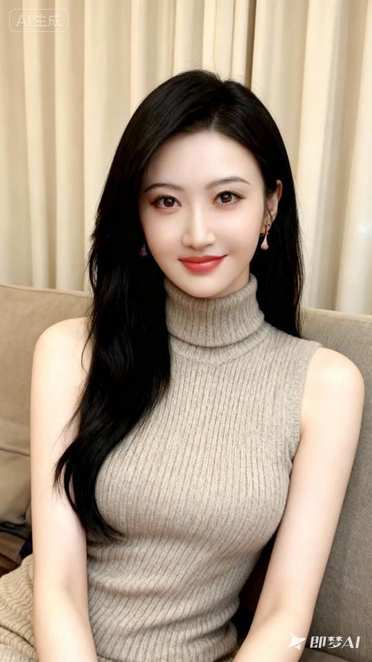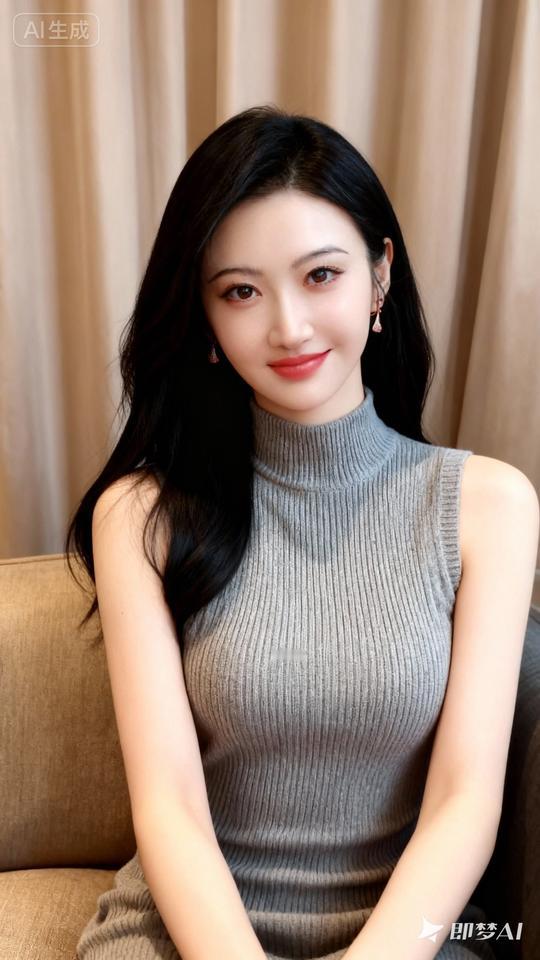 温柔甜美的微笑,灰色高领毛衣,简约优雅,尽显时尚魅力。