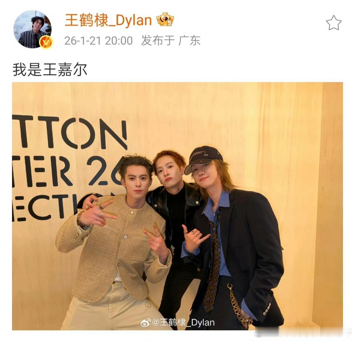王鹤棣、王嘉尔、徐明浩发LV看秀合照,好会玩