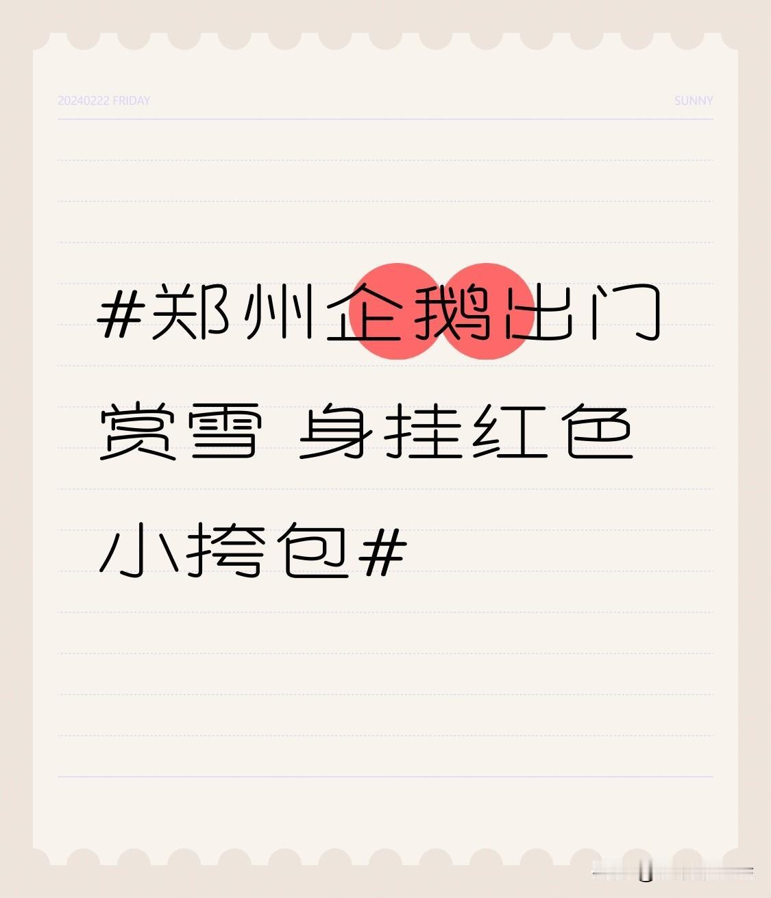 身挂红色小挎包 1月19日郑州下雪,郑州海昌海洋公园的两只小企鹅出门赏雪,视频火出圈啦!这俩2025年出生的帝企鹅幼崽,身挂红色小挎包,在雪地里摇摇晃晃,背影像小朋友,好多网友还以为是穿企鹅服的娃呢。 园方是看19日气温低、积雪厚,才让它们到馆门口短暂活动。工作人员说,企鹅平时住馆内,有造雪系统模拟自然环境,这次是赶上室外下雪才让它们出来转转,还有饲养员看护。不止郑州,多地海昌极地公园冬天都有“企鹅限定遛弯”,太萌啦!