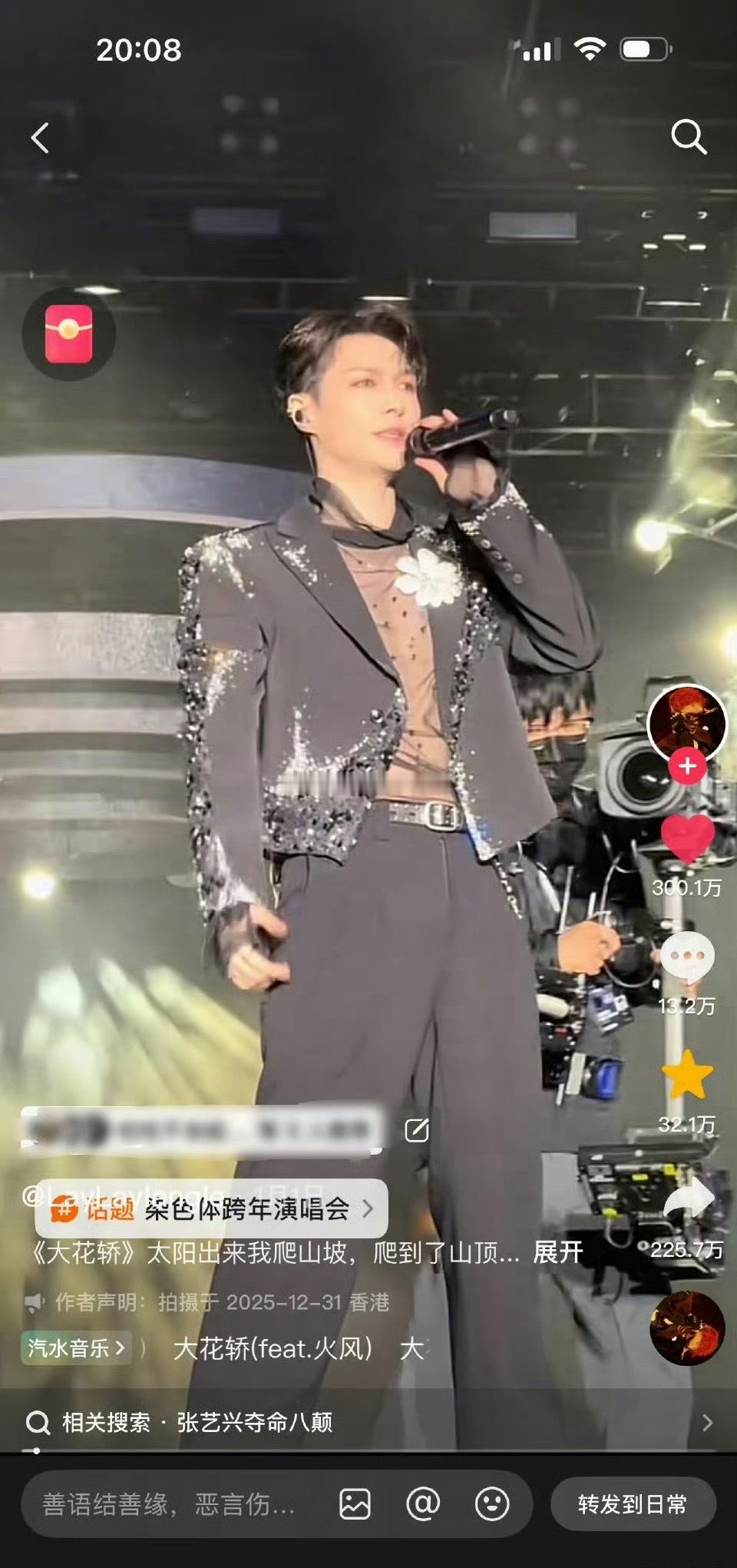 张艺兴大花轿单条300w达成 播放量高达1.01亿!转发都有225万,这是真纯靠舞台大爆出圈