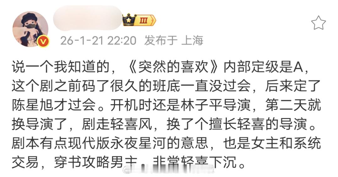 《突然的喜欢》号称现代版永夜星河,定了陈星旭后才过会。新剧又演霸总,陈星旭磨刀霍霍,势必要通过这部戏找回场子。剧本新颖、陈星旭王玉雯还有大热综艺,两人发小更有cp感,不知道能不能播过轧戏?