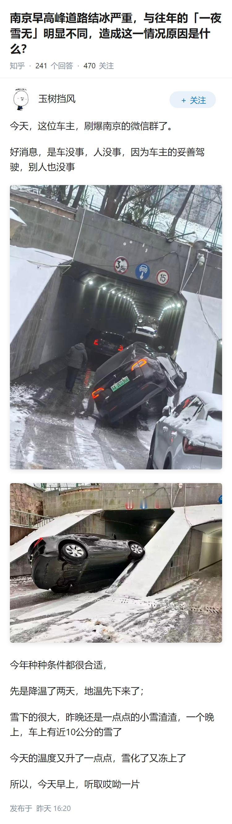 南京早高峰道路结冰严重,与往年的「一夜雪无」明显不同,造成这一情况原因是什么?