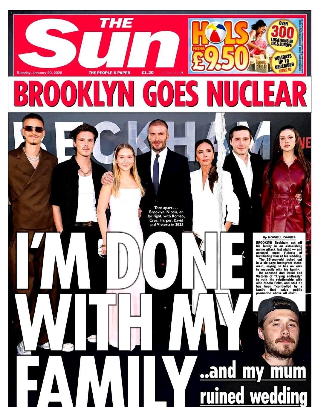 贝克汉姆长子断亲:50年豪门首撕 布鲁克林·贝克汉姆凌晨发长文,宣布与父母彻底断联。一句“我不想再和解”直接炸穿热搜。 导火索不是婆媳矛盾,是姓氏。他指控爸妈开出千万英镑,让他签协议放弃“贝克汉姆”商业使用权。婚纱、生日宴、二次婚礼,三次求和被拒,最后一次连酒店门都没让进。 我翻完声明,最扎心的是这句:从小活在镜头里,直到搬出豪宅才第一次睡踏实。原来顶级流量也是牢笼。 豪门剧本翻到这一页,儿子只想做回普通人。