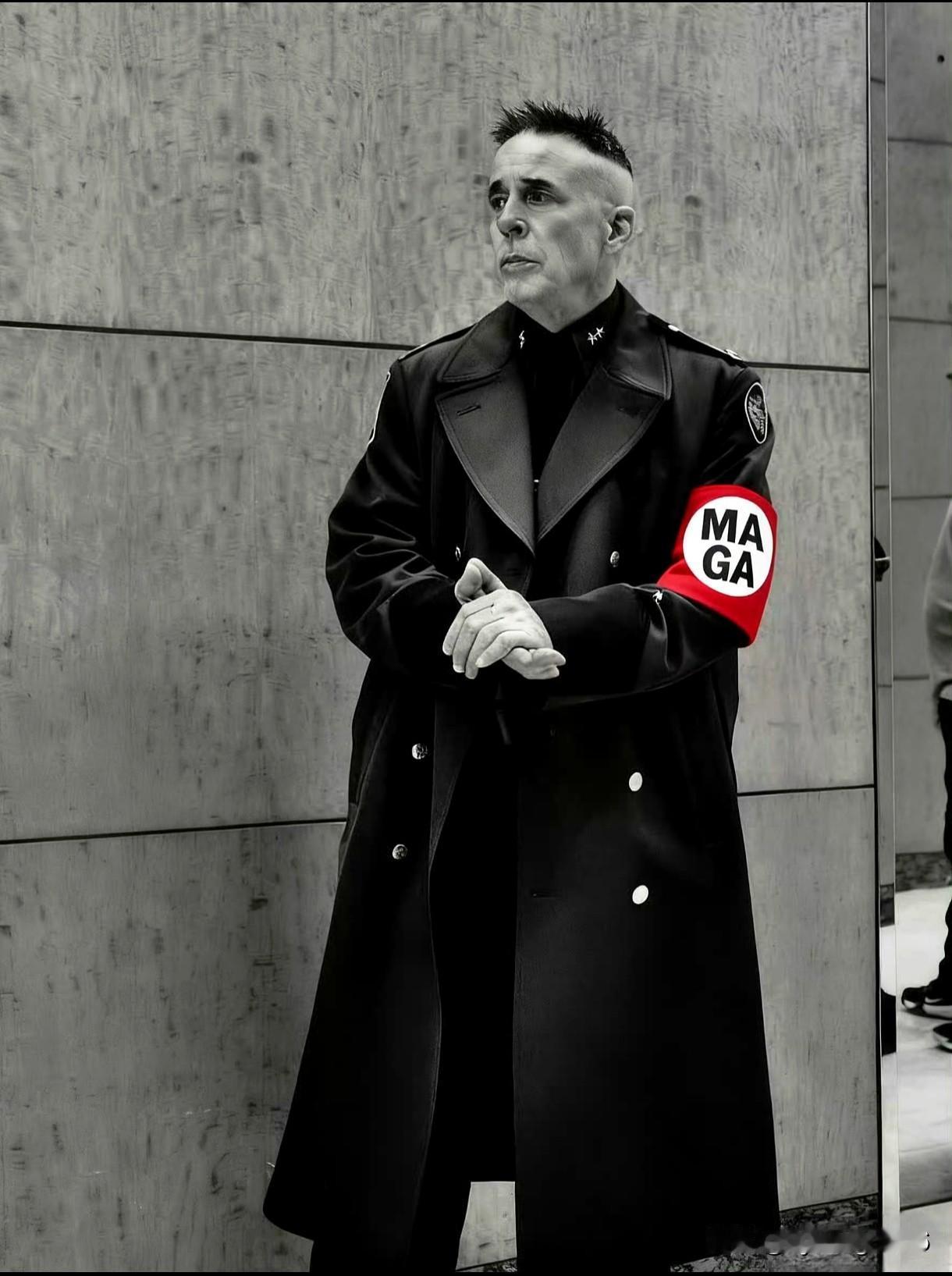 ICE个人档案(绝密)指挥官格雷戈里·博维诺 :纯雅利安人,忠于元首,性格坚定,与同事保持良好的关系,对帝国的敌人毫不留情……” 去年美国国土安全部发布的视频片段传播开来(图二),其他用户也纷纷加入讨论。“他看起来就像是从党卫军里走出来的,”一位用户写道。“一个装模作样的庸才,显然以为自己是希特勒的党卫军成员……而且也差不远了,”另一位用户说道,并补充说,博维诺“最终会和他们一起受审”。还有一条帖子嘲讽博维诺是“矮个子希姆莱”,第四位用户则表示,这张黑白照片“让人联想到《辛德勒的名单》”。 博维诺的照片——双手交叠放在双排扣大衣的翻领下——也成为了一个表情包,配文诸如“如果不是纳粹,为什么长得像纳粹?”
