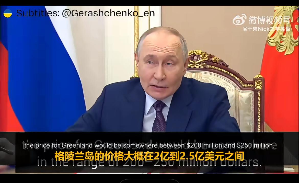 俄罗斯“助攻”美国,也给丹麦“补了一刀”! 普京称,格陵兰事务与俄罗斯并无关,他援引俄美历史上阿拉斯加交易的先例表示,按面积折算,认为格陵兰价值约在2亿至2.5亿美元之间,美国有能力承担这一价格。 此外,他还提到丹麦曾将维尔京群岛出售给美国,并且指出丹麦长期对格陵兰实施严苛的殖民统治。 由此可见,俄罗斯是公然调侃丹麦。而丹麦也算是咎由自取,在俄乌战争中,丹麦是力挺乌克兰最积极的国家,几乎倾尽全力相助。怪不得俄罗斯拿丹麦开涮,还给出了参考价。美媒也对格陵兰岛进行了估值,参照当年从丹麦手中购买美属维尔京群岛一事,美媒估算格陵兰岛价值在125亿至770亿美元之间,相较于阿拉斯加、法属路易斯安那和墨西哥,这个估价也算有“诚意”了。 然而,就格陵兰岛的地理位置和岛上的矿产资源而言,俄美给出的价格连一折都不到,这明显是在戏耍丹麦。 如今,丹麦同时得罪了美俄中三国,前景堪忧啊!不过也是自找的,美国不如再加点钱把丹麦也一并买下,省得让丹麦心里不痛快!