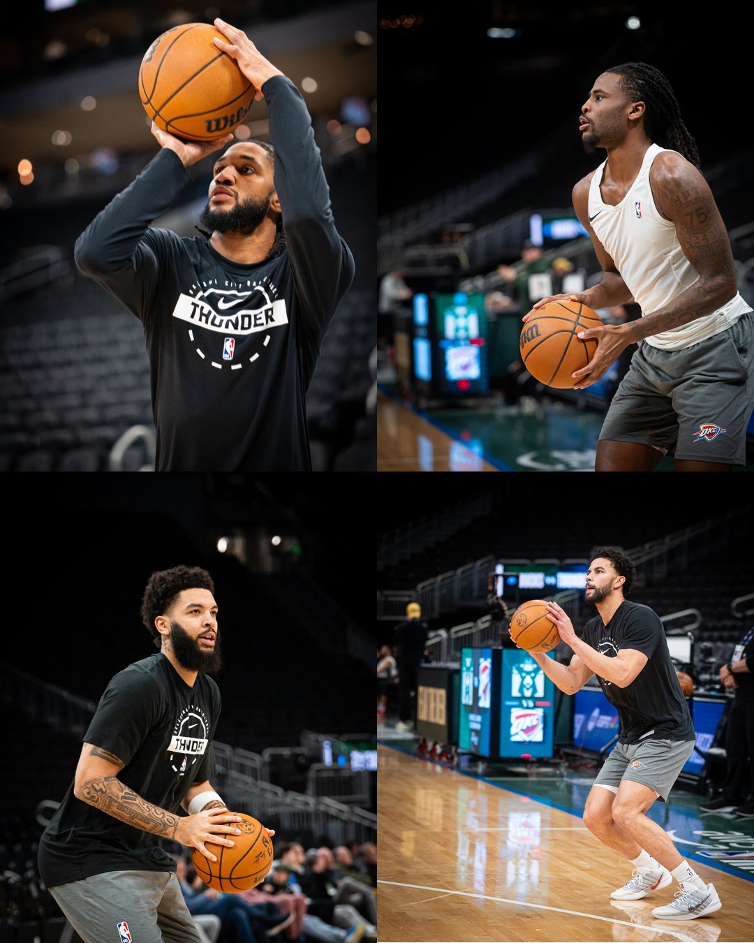 雷霆挑战雄鹿的比赛即将开始,马戴派出的首发是:亚历山大、卡森华莱士、米切尔、多尔特与切特!杰林,阿龙维金斯,卡鲁索,杰伦,哈滕均无法出战。编辑by 蓝色狂潮OKC雷霆vs雄鹿雷霆