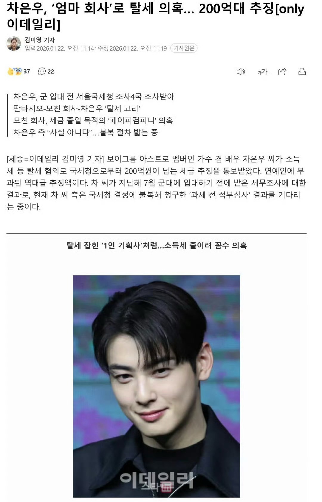 韩媒报道 车银优疑似通过母亲成立的无实体公司逃税200亿韩元(9500万人民币左右)