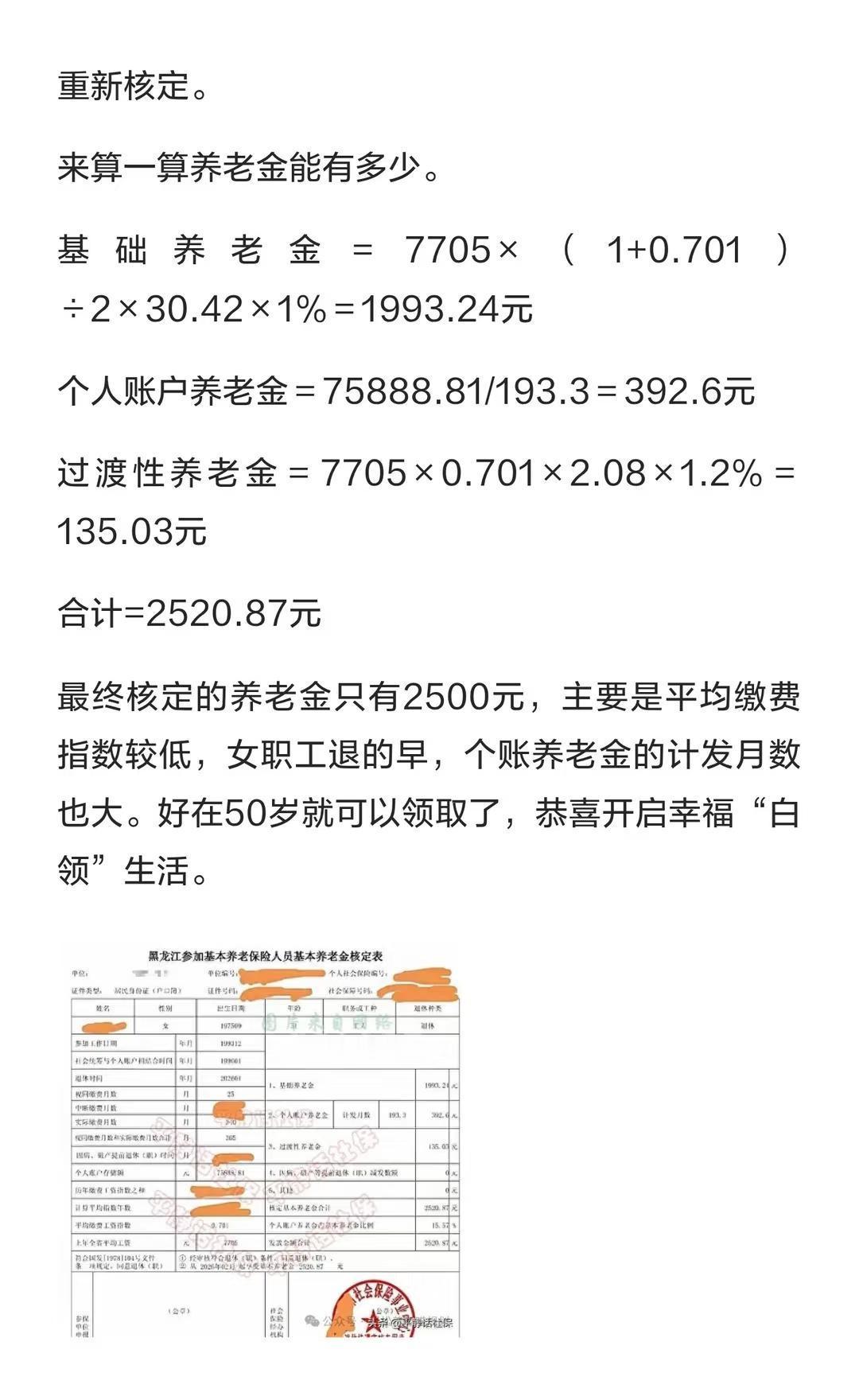 工龄30年5个月个账75888.81元,50岁退休 工龄30年5个月个账75888.81元,50岁退休,养老金有2500元?养老金
