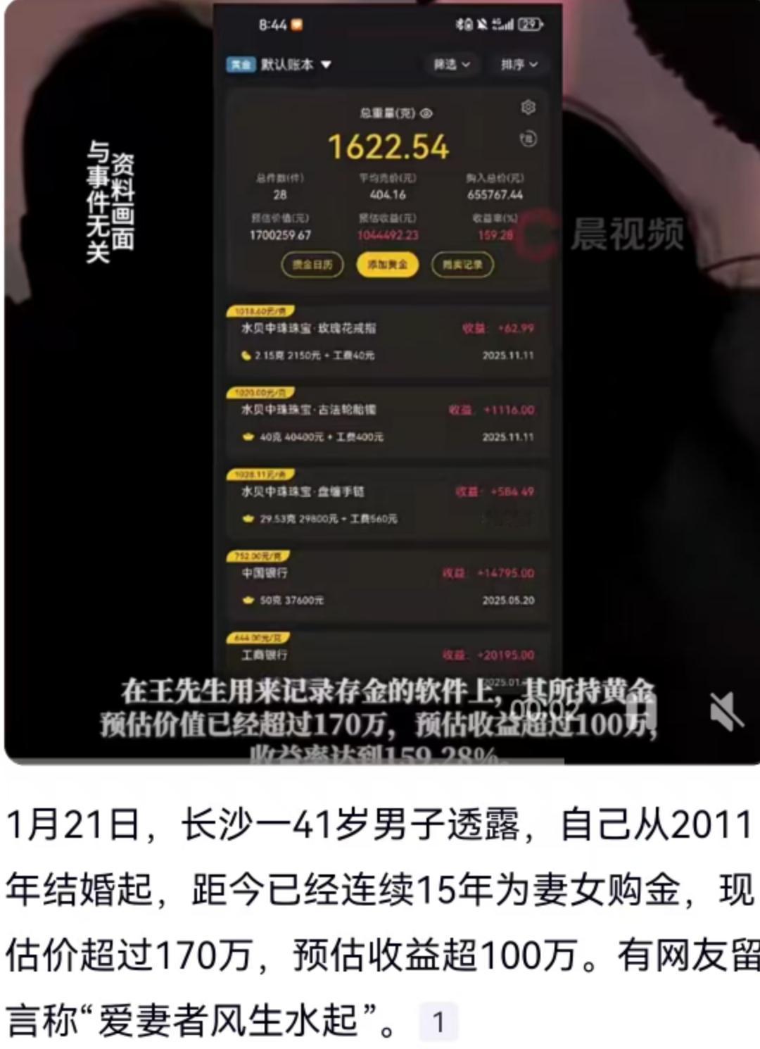1月21日,长沙一位41岁的男子的故事在网上炸开了锅,不是因为什么惊天动地的大事,而是因为他做的一件“笨事”最终变成了极聪明的事。这位大哥从2011年结婚那天起,就给自己定下了一个雷打不动的规矩:年年给妻女买金。这一买就是15年,时间跨度从2011年一直延续到了2025年。这期间国际金价起起伏伏,但他始终没停手。如今算了一笔账,家里这一堆金首饰和金条,目前的估价已经超过了170万,而他粗略计算了一下,预估收益更是超过了100万。 这事儿之所以能火,是因为它同时触动了大家对于婚姻、理财以及性别角色的敏感神经。广东网友“买镶楣0fq”的一句“爱妻者风生水起,亏妻者百财不入”获得了高赞,这句话虽然听起来有点像玄学,但其实道出了传统家庭观念中“和气生财”的核心逻辑。在很多人的认知里,家庭关系的稳定本身就是一种巨大的无形资产,这位长沙大哥不仅资产增值了,婚姻质量大概率也是稳如泰山。 不过,也有网友发出了不一样的声音。同样来自广东的“纸盒子M”就犀利地指出,这别又是新一轮的“PUA男人”。他提出了一个很有趣的假设:如果这15年来,妻子也能坚持为丈夫购金,那收益不就直接翻倍了吗?所以说“爱夫者风生水起”也成立。这种观点其实打破了以往只有男人单方面付出的叙事框架,强调了现代婚姻中经济投入的双向性。在当下的经济环境里,不论男女,谁掌握真正的硬通货,谁就掌握了家庭经济的安全阀。 还有宁夏网友“小顿米”一针见血地评论:“幸亏没买钻石,买的是黄金呀。”这句大实话才是整个故事最底层的逻辑支撑。回顾过去15年的时间线,也就是2011年前后,国内黄金价格大概在每克300多元人民币徘徊,而如今金价早已站上了每克600元甚至更高的高位。如果是买钻石,哪怕当时花大价钱买了所谓的大克拉钻戒,拿到二手市场去变现,恐怕连零头都难收回。黄金作为一种全球通用的硬通货,它的货币属性和保值功能在这些年的动荡中展现得淋漓尽致。 这件事给普通人的启发其实远超情感范畴。它其实揭示了一个最朴素却最容易被遗忘的投资真理:长期主义和选对赛道。2011年买房的赚了,买绩优股的赚了,持续买黄金的也赚了。最难的不是判断黄金会不会涨,而是能不能在15年的时间里,不管风吹草动,坚持把这笔钱存下来、变成金子。很多人总想着在股市里一夜暴富,结果往往是追涨杀跌,而这位长沙大哥用最笨的方法——定投黄金,跑赢了市面上绝大多数理财产品。 当然,这并不是说大家都得跟风去金店扫货。金价已经处于历史高位,现在追高买入是否合适,那是专业金融分析师需要考虑的问题。我们要看到的是这种理财思路的内核:强制储蓄、配置硬资产、以及将家庭财富与情感链接绑定。 不管是“爱妻”还是“爱夫”,本质上都是对抗家庭财务风险的一种手段。这170万的金子,既是这位丈夫对妻女沉甸甸的爱意,也是这个家庭面对未来不确定性的底气。在这个充满变数的时代,这种看得见、摸得着、随时能变现的底气,比任何甜言蜜语都要来得实在。所以说,风生水起的背后,既有家庭和睦的加持,也有对投资周期精准把握的智慧。 以上内容仅供参考和借鉴