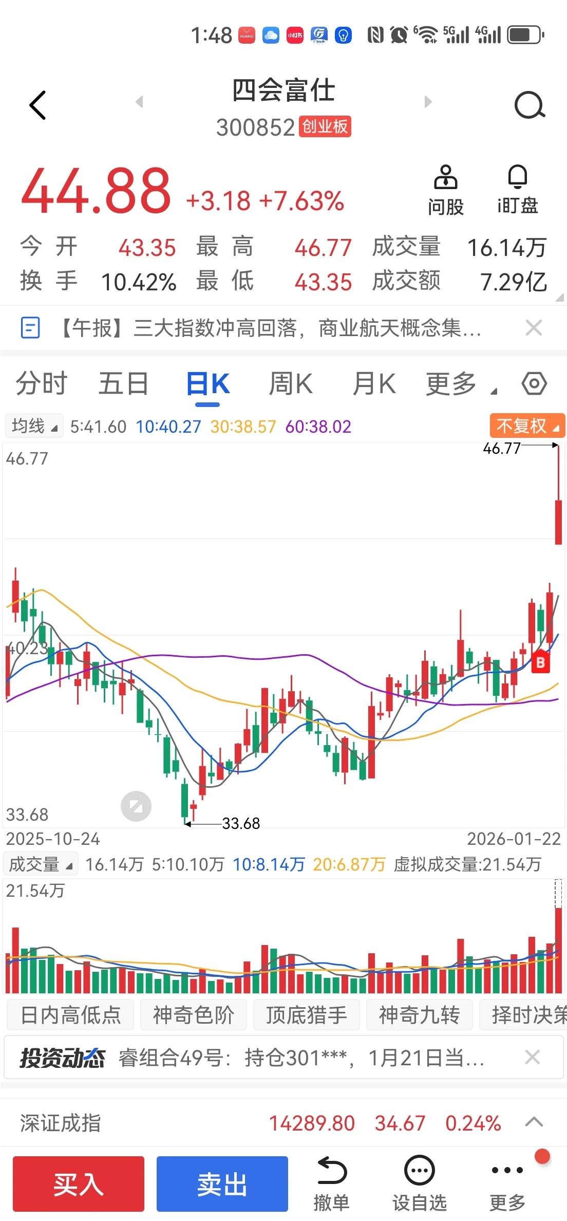 炸裂!四会富仕(300852)单日暴涨7.75%,创近期新高! 1月