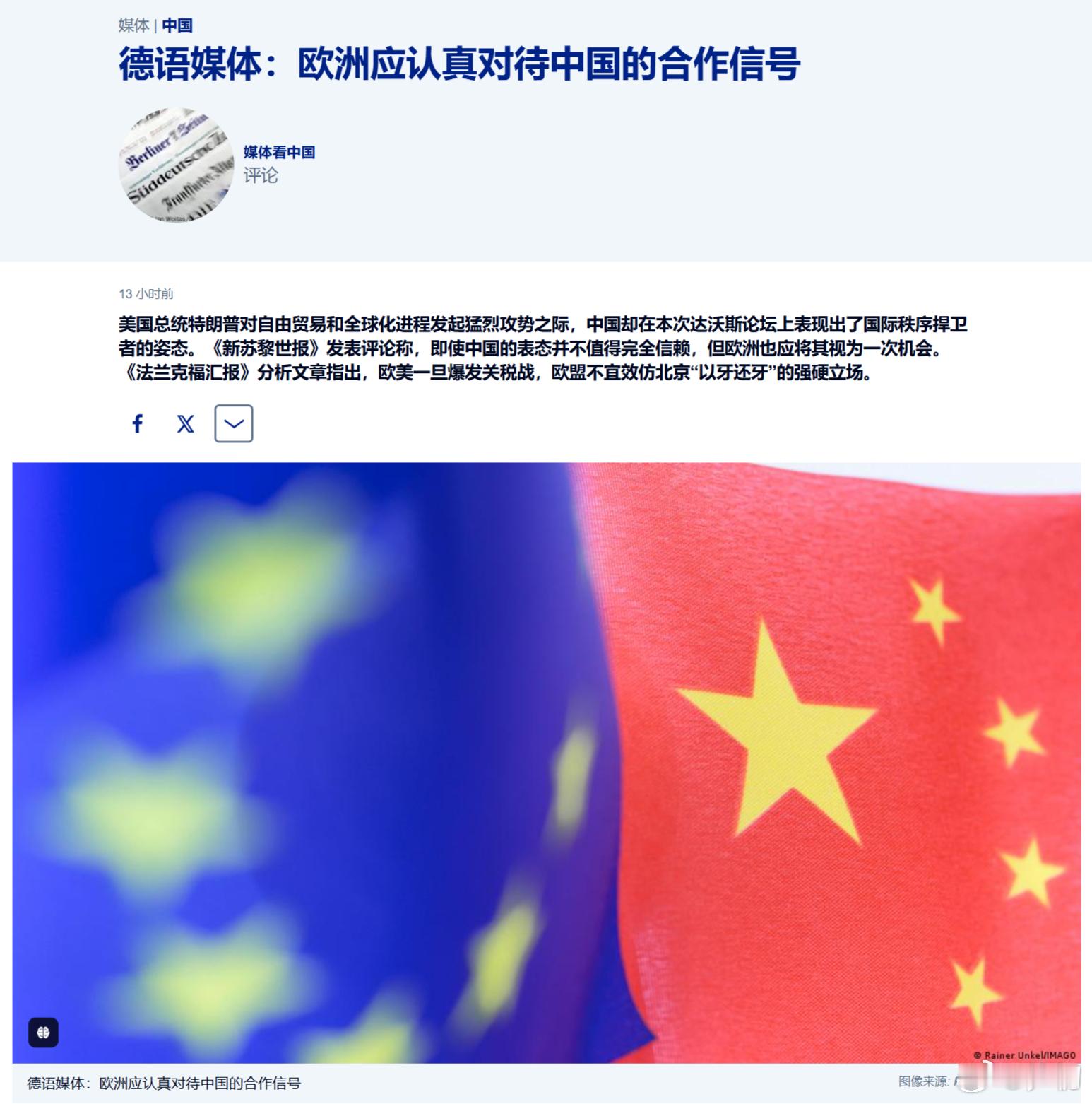 德国《新苏黎世报》:欧洲应认真对待中国的合作信号。欧洲人当前所经历的,同中国在特朗普第一任期内的经历惊人的相似。恰恰是这种经历激发了北京为实现战略自主而大举投资的热情。当初欧洲配合美国对中国进行科技战贸易战的时候不是跳的挺欢的吗?挨打了想起中国的好了?贱婢!