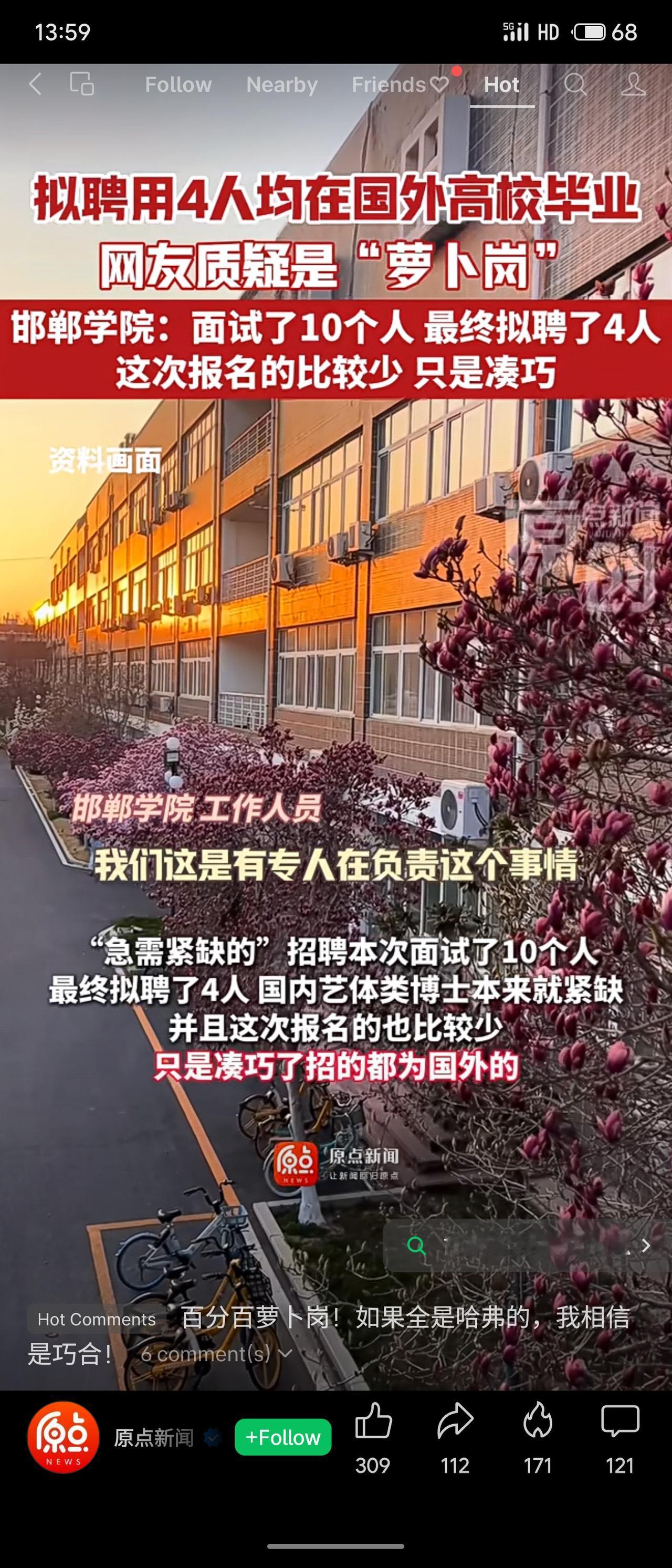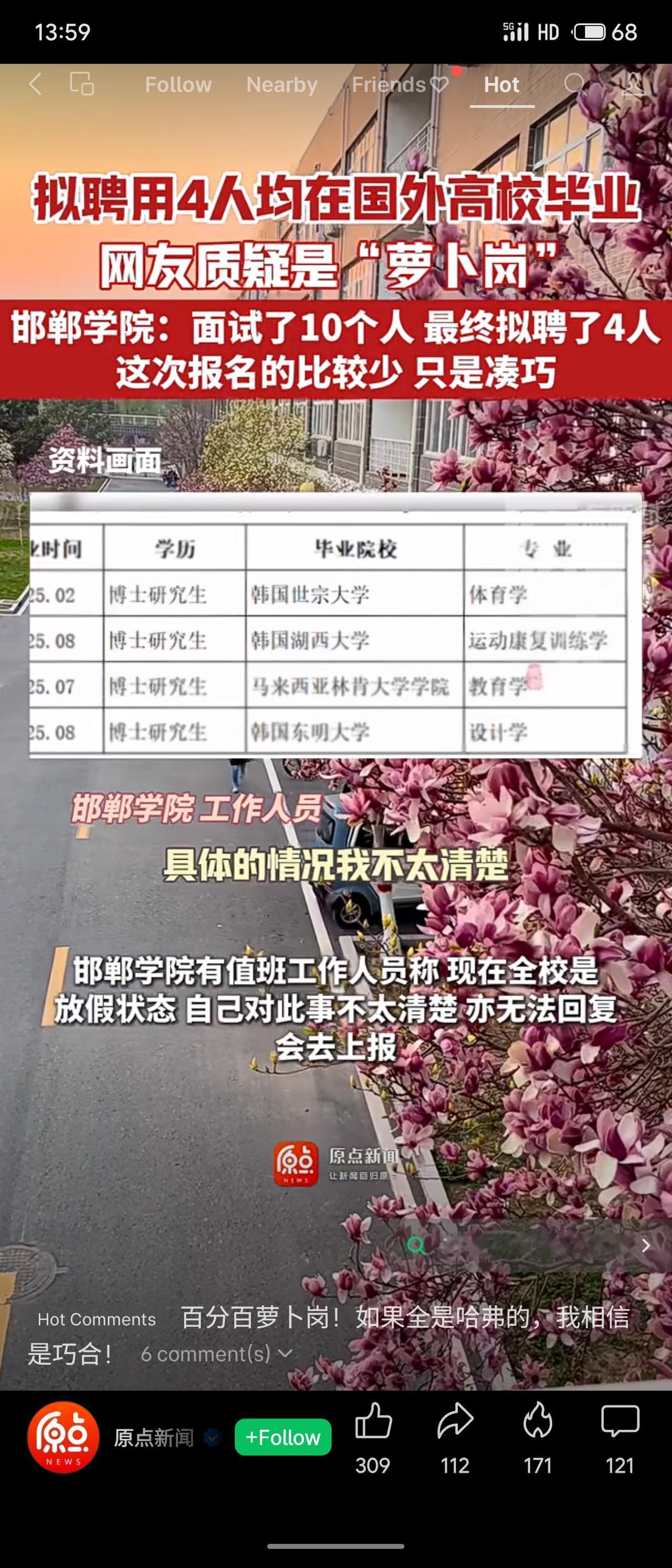 邯郸学院拟聘用的4名博士均毕业于韩国、马来西亚高校,引发“萝卜岗”质疑。校方回应称,此次为急需紧缺专业高层次人才招聘,仅10人报名,最终录用4人属巧合,且国内艺体类博士本就稀缺。
