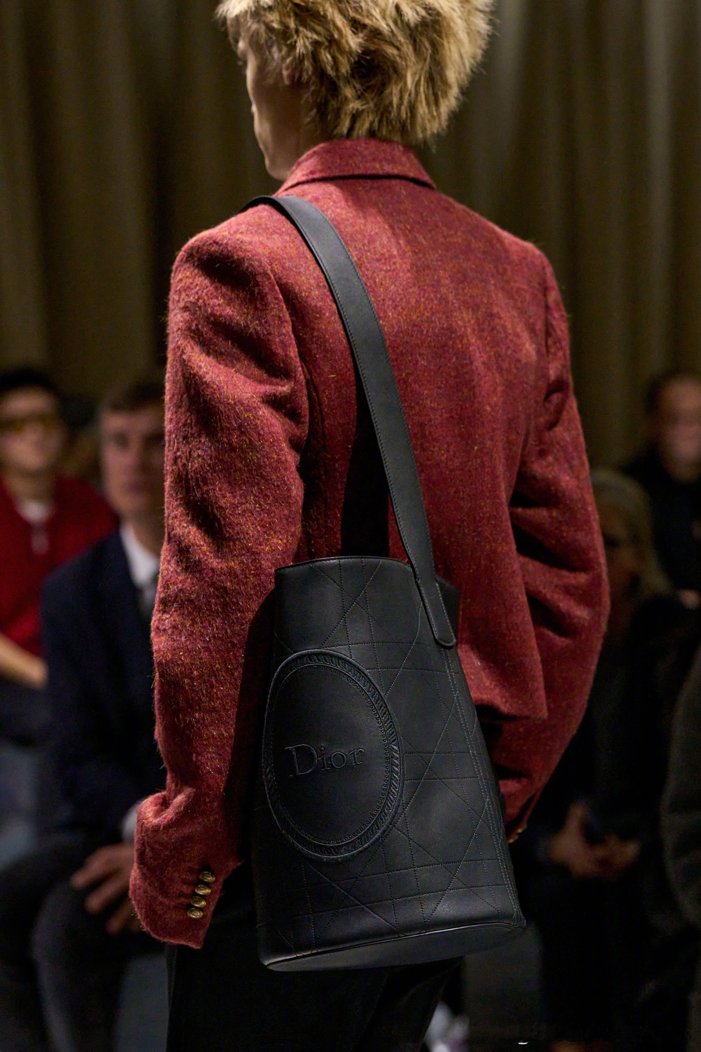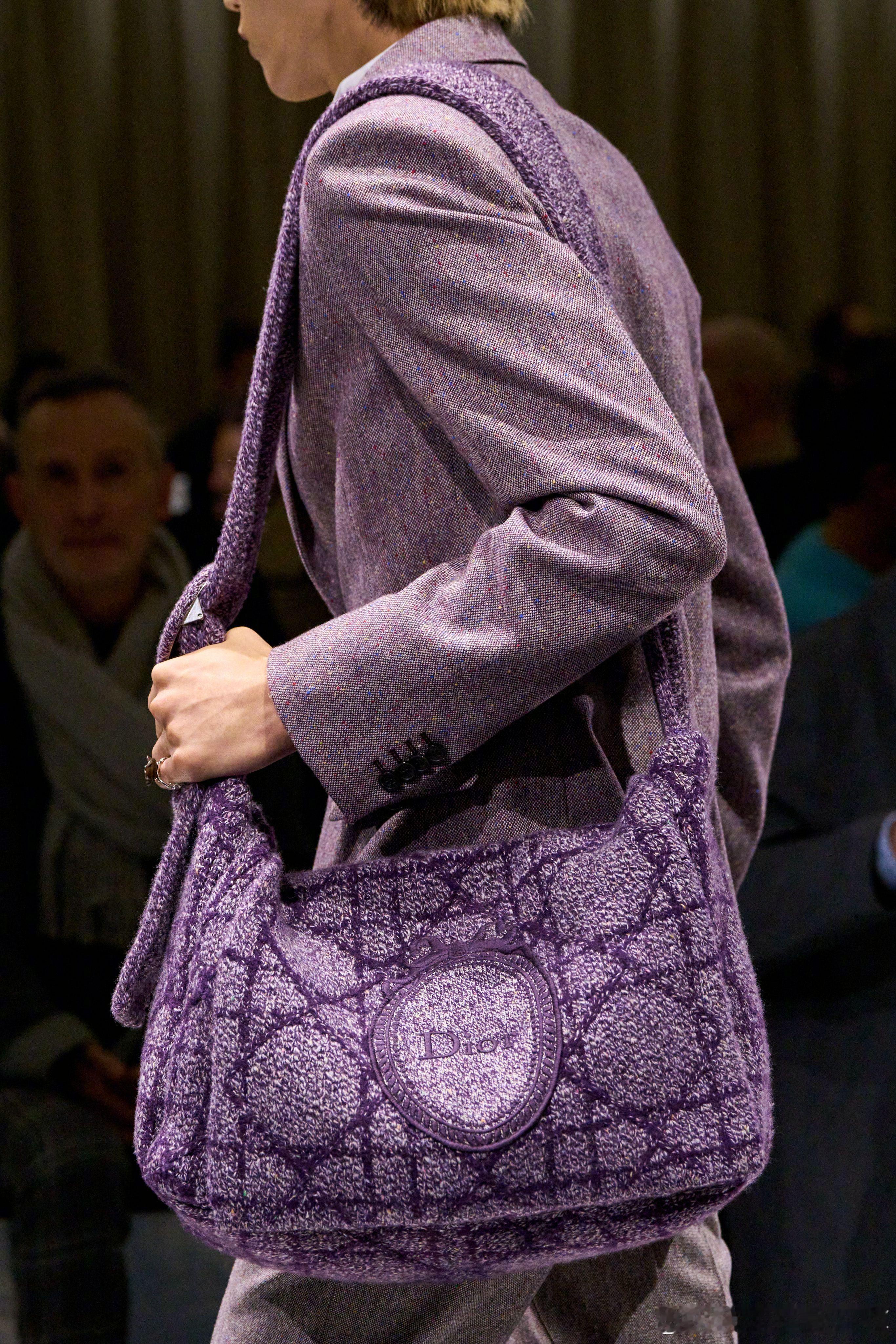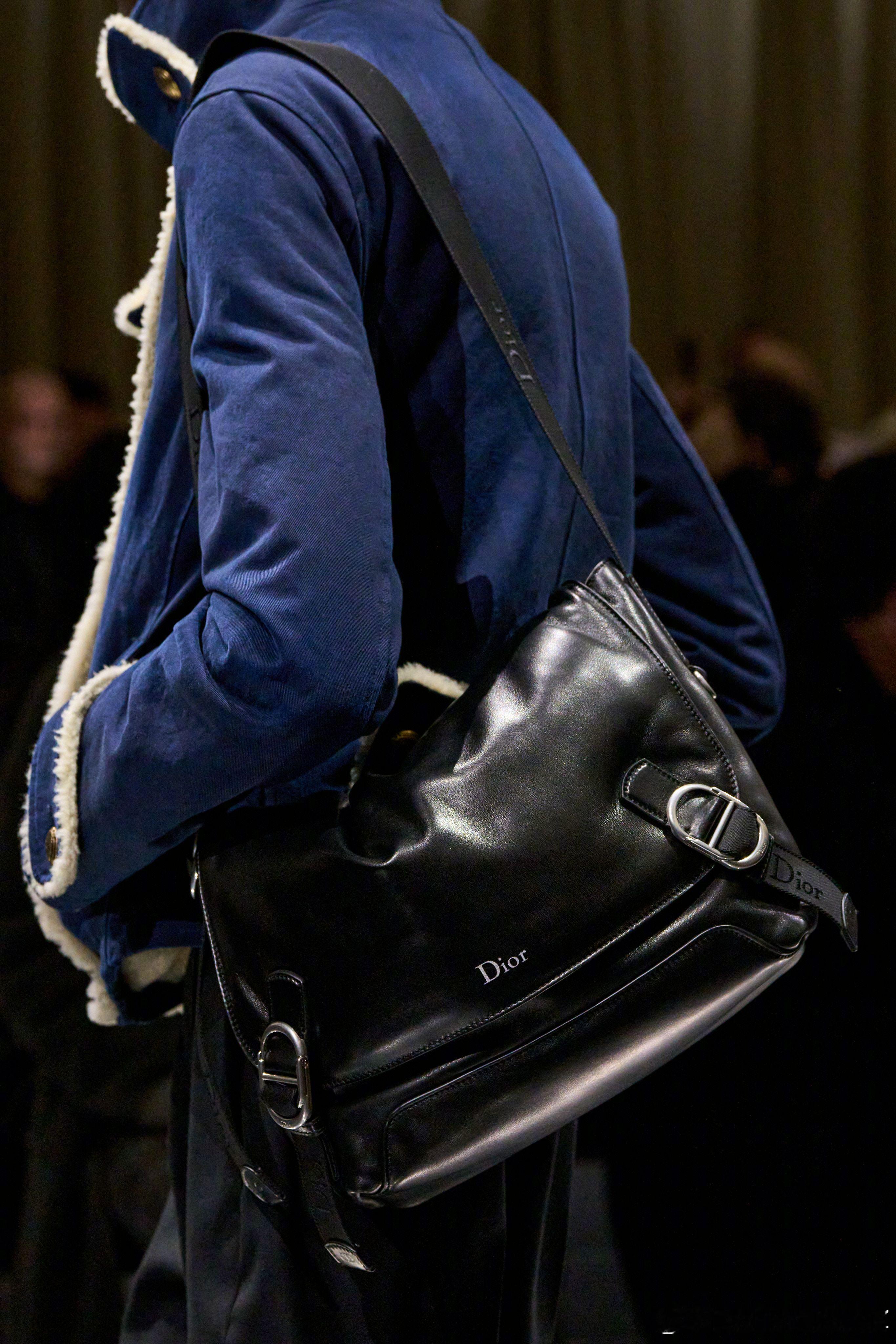 Dior 2026冬季男装系列,包袋细节特写。柔软的藤格纹图案侧背包、皮革圆筒包是重点单品,上一季首发的 Dior JETT 也迎来全新材质和配色。成衣前卫先锋的同时,Jonathan 呈现的配饰作品显得更加实用好搭。男装周 💜Dior大秀