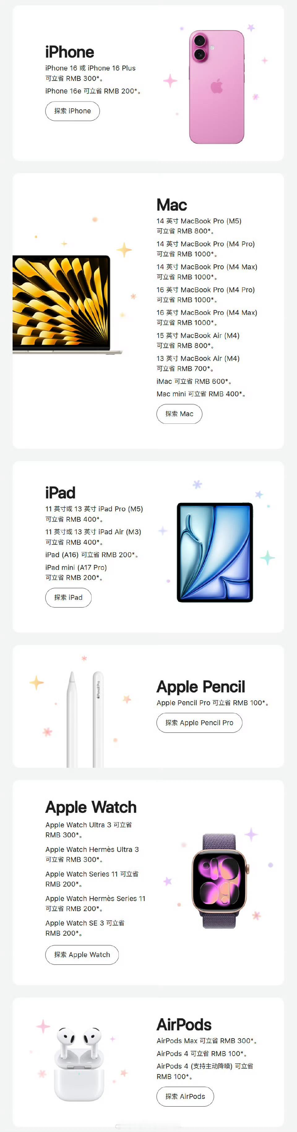 苹果推出新春优惠官网也就笔记本+24期免息叠加新春优惠比较划算了,其他产品降的这点价格随便一个第三方平台都更低,没啥必要在官网买。一直挺好奇除了首发以外,在苹果官网原价购买的客群是啥样的