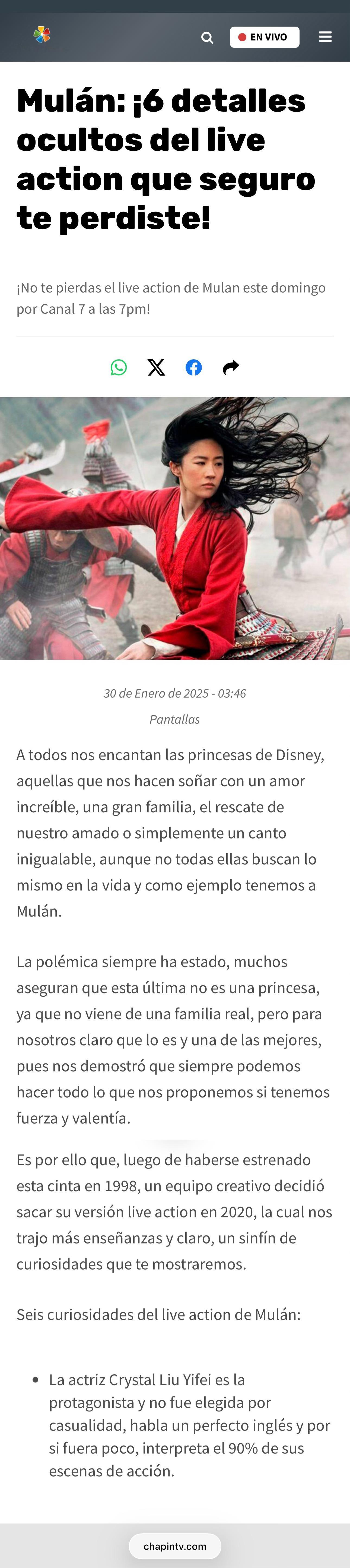 刘亦菲 lyf 花木兰 刘亦菲迪士尼大女主电影《花木兰》全球大爆后持续在各国播出 长尾不断,危地马拉Chapin TV 7频道2025年2月播出,官方网站和社媒宣传不断,称赞了自己完成了90%+动作戏国际刀马旦,天仙不愧是全球星光刘亦菲80后唯一刀马旦