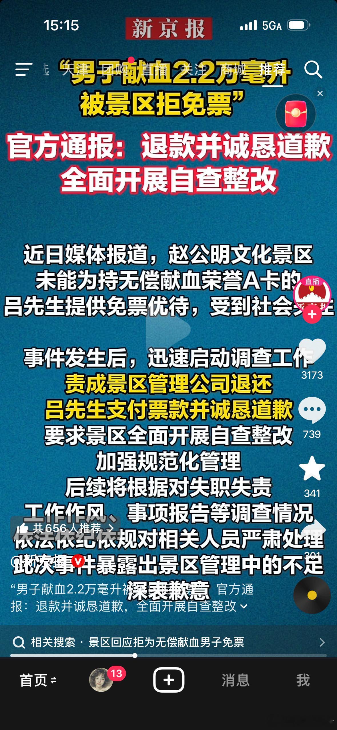 “男子献血2.2万毫升被景区拒免票”,初步算下,一次400,10次4000,55次22000,半年1次,坚持献血27年半,是个狠人。我献血2次就没献了