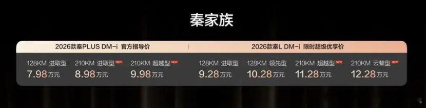 纯电210km同级最长!2026款比亚迪秦长续航版首周狂揽1.5万订单。日前,比亚迪王朝公布了秦家族的销量数据,其中2026款比亚迪秦家族210KM长续航版一周累计订单竟然达到15698辆的好成绩,不得不说比亚迪在销量这一块还是太权威了。那么今年,比亚迪的产品规划也覆盖了多品牌,以经典的王朝网为例,比亚迪秦MAX、元MAX、比亚迪唐9、汉9等令人瞩目的产品将陆续登场,大家今年期待比亚迪的哪款汽车呢?比亚迪秦