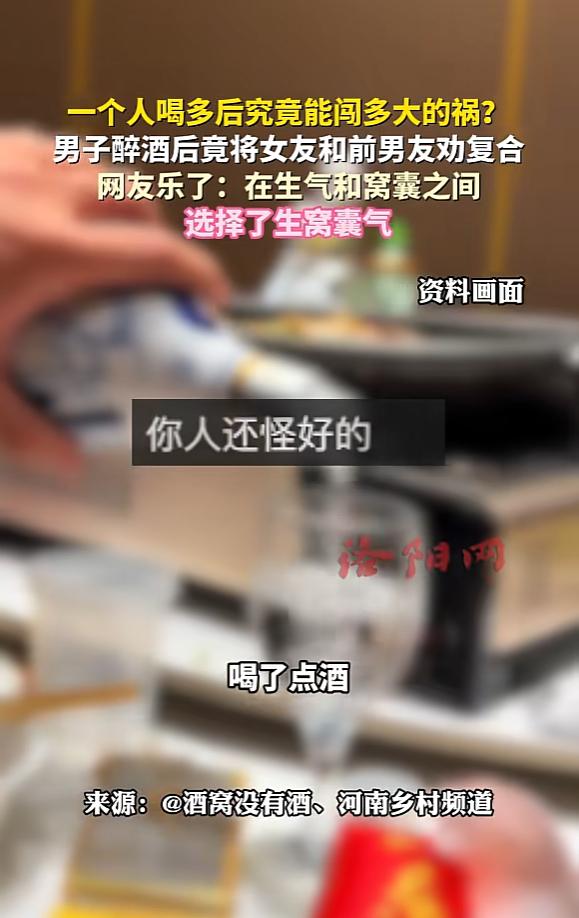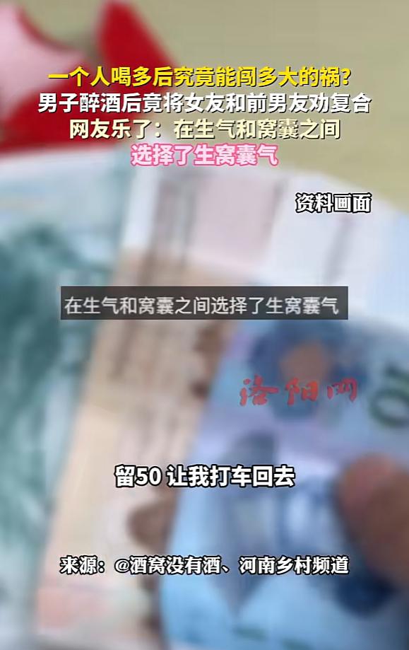 “离了个大谱!”近日,吉林长春,一男子与女友去喝酒,喝醉后因为神志不清,将女友前男友也叫了出来,还在谈话过程中给他俩好一顿撮合,结果女友与前男友竟直接复合,男子在酒醒后追悔莫及。网友:这就是格局! 最近在吉林长春上演的这一出闹剧,实在是一次次冲击着大众对于“酒后误事”这四个字的理解底线。 据1月20日的相关报道,起因其实很单纯。男子本来是想跟女友吃个饭、喝两杯,借着微醺的气氛升温一下感情。未曾料到,他高估了自身酒量。才浅酌几杯,便觉天旋地转、晕头转向。刹那间,意识如断了线的风筝,彻底消散于混沌之中。 最要命的操作紧接着就来了。就在神志不清的时候,他不知怎么脑回路突然清奇起来,竟然掏出手机联系上了女友的前任,并且执意邀请对方过来一起聚聚。 等那位前男友真的到了现场,气氛本该尴尬至极。可这位醉汉完全不按套路出牌,摇身一变当起了“月老”,拽着另外两人的手就开始了疯狂输出。 他嘴里不停念叨,一会儿感慨“你俩以前多般配”,一会儿又数落女友“别太固执了”,转头还叮嘱那男的“好好把握机会”。那副苦口婆心的架势,简直比当事人的亲妈还要操心。 整场闹剧下来,他似乎完全忘了自己才是正牌男友这回事,沉浸在吃瓜群众的角色里无法自拔,大公无私到了极点。 令人大跌眼镜的是,他这番毫无逻辑的胡乱撮合,竟然奇迹般地奏效了!也不知道是这两人原本就余情未了,还是正好缺个台阶下。被他这么一通忽悠,两人对视一番后心领神会,当场就拍板决定复合。 故事还没完,最扎心的在后头。撮合成功后,这哥们儿豪气冲天,把自己身上的钱一股脑全掏给了那对“新人”。结果自己身无分文,最后是硬生生走回家的,甚至连50块钱的打车费都没给自己留。 直到次日酒醒,听朋友复述完前一晚的“丰功伟绩”,他整个人瞬间如遭雷击,彻底懵在原地。 回过神来后,悔恨的情绪如同潮水般涌来。看看空荡荡的钱包,再想想已经易主的女友,这不仅是“赔了夫人又折兵”,还倒贴了钱,真的是教科书级别的“大冤种”。恐怕他当时心里早把自己骂了千百遍。原本是奔着甜蜜约会去的,硬是凭实力给演变成了自己的“分手现场”,这种心理落差换谁能扛得住? 这件事在网上发酵后,围观网友们也是炸了锅,纷纷开启嘲讽模式:“这就是格局!以后人家俩结婚,你必须坐主桌,红包得包大点,毕竟是你撮合的!” 更有看热闹不嫌事大的网友戏谑道:“兄弟,你这是在生气和窝囊之间,选择了生窝囊气啊!”调侃归调侃,但这件看似荒唐的闹剧,实则给我们所有人都敲响了警钟。 饮酒务必要量力而行,切忌贪杯喝到断片、丧失理智。否则,一旦做出什么不可挽回的蠢事,那真是后悔药都没处买。 特别是牵扯到感情这种敏感话题时,更得时刻保持头脑清醒,千万别因为一时酒精上头犯了糊涂,亲手葬送了自己的幸福。 信息来源:《一个人喝多后究竟能闯多大的祸?男子醉酒后竟将女友和前男友劝复合,网友:在生气和窝囊之间选择了生窝囊气》洛阳网